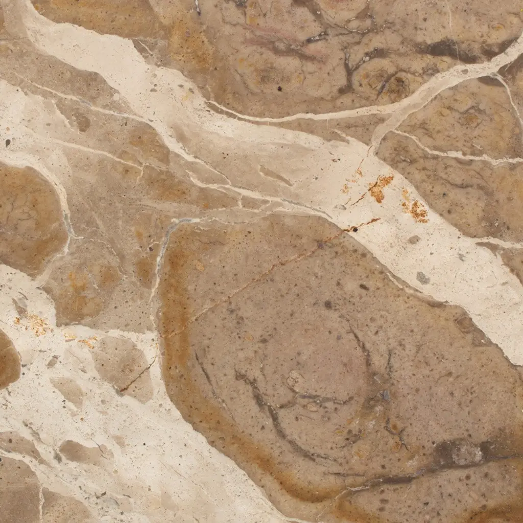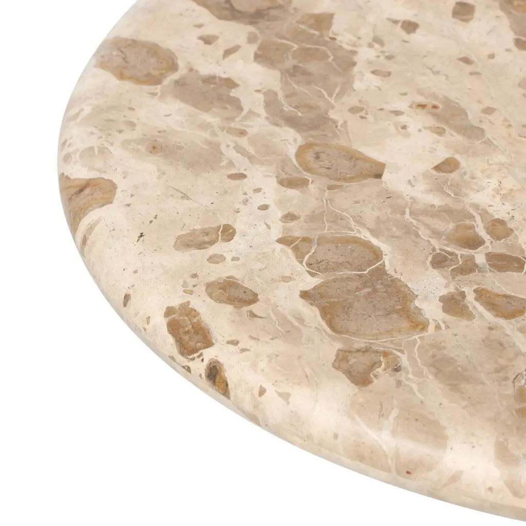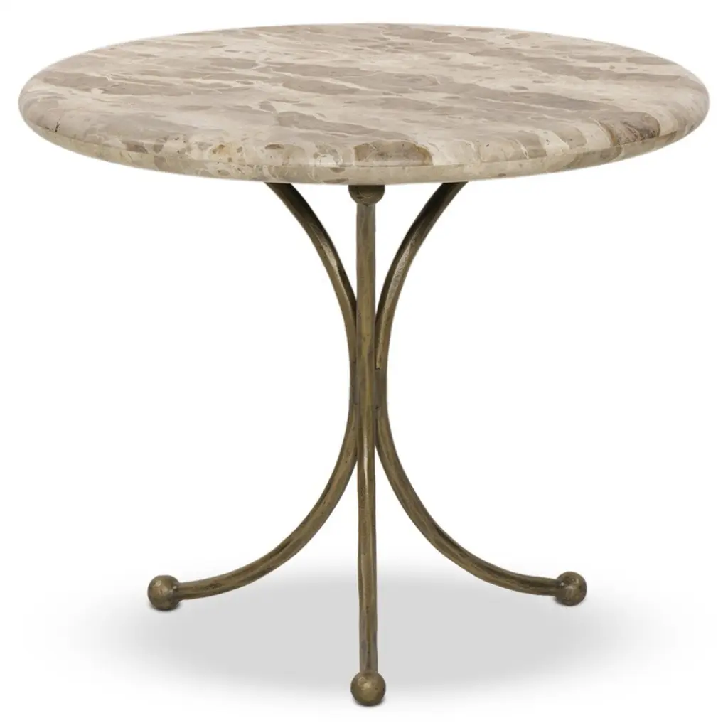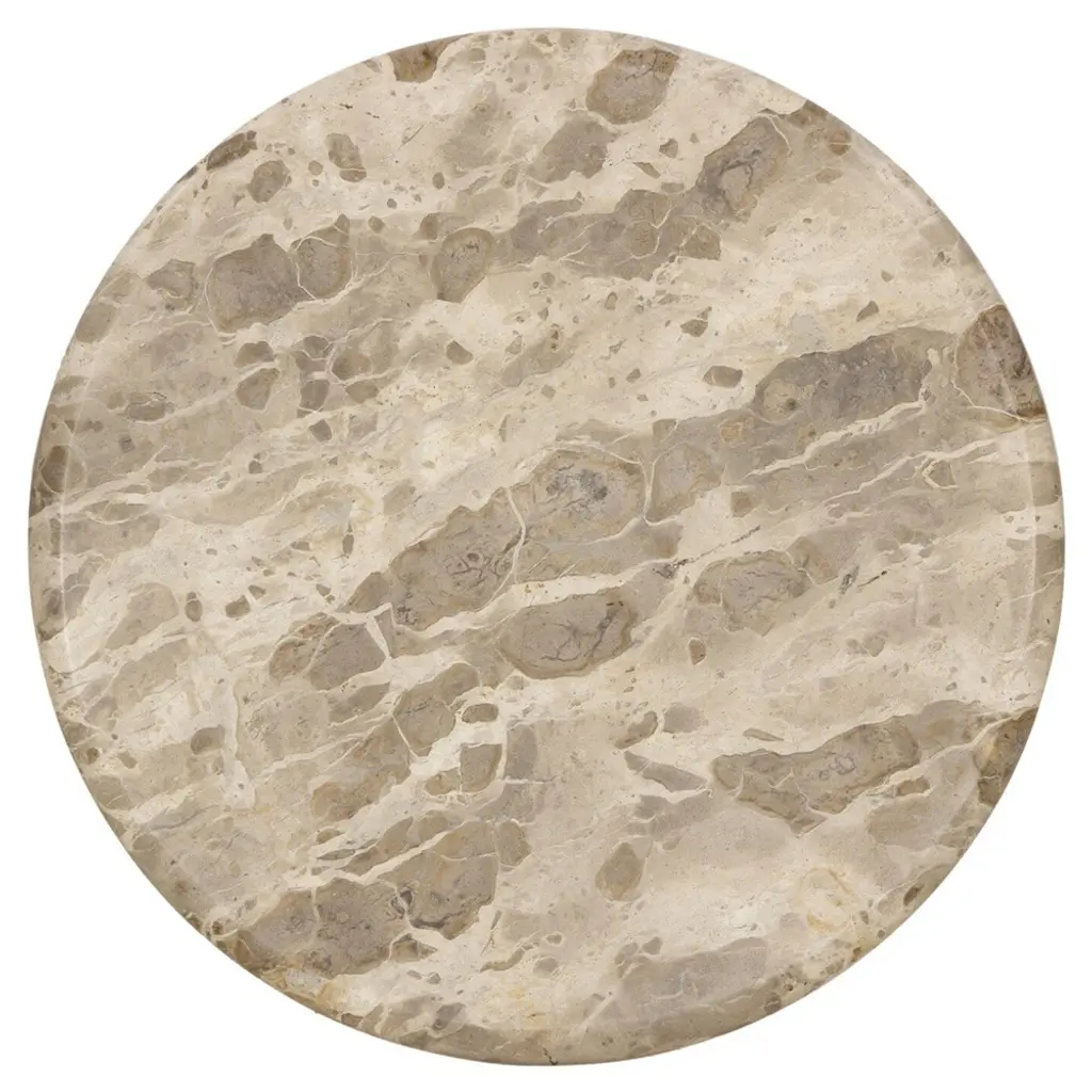 Archibald Updated Traditional Beige Marble Aged Brass Round End Table