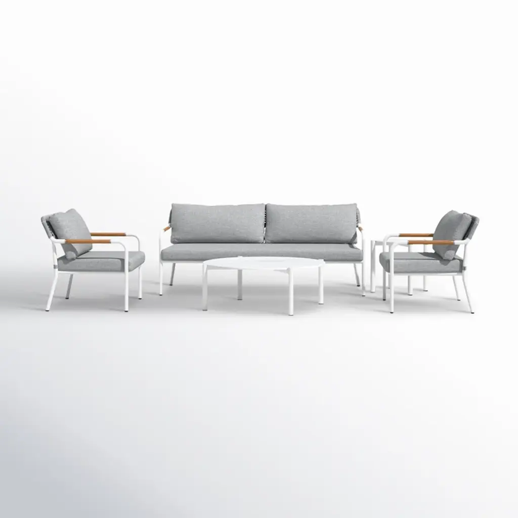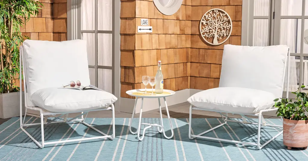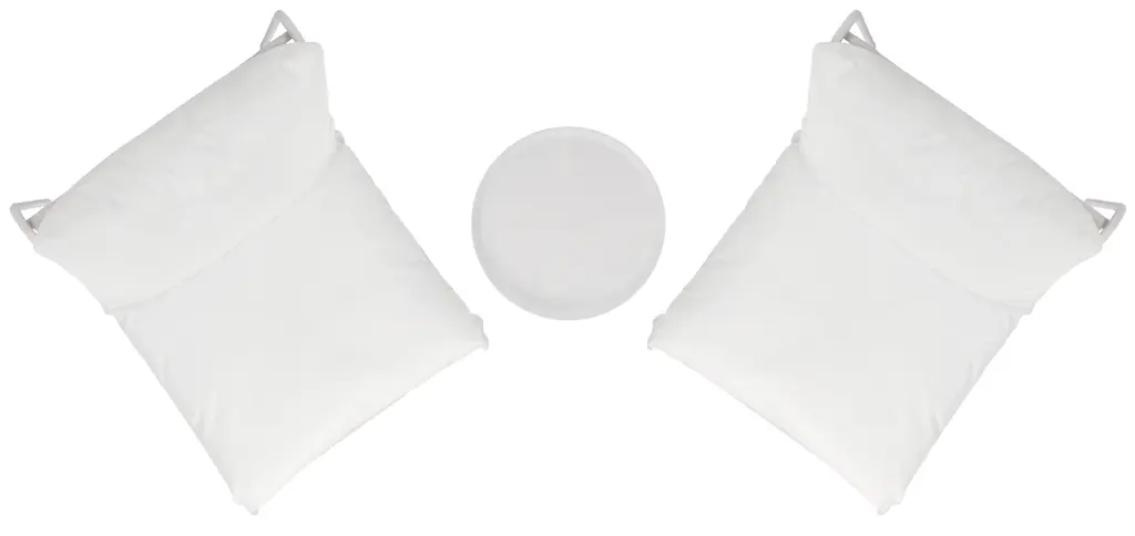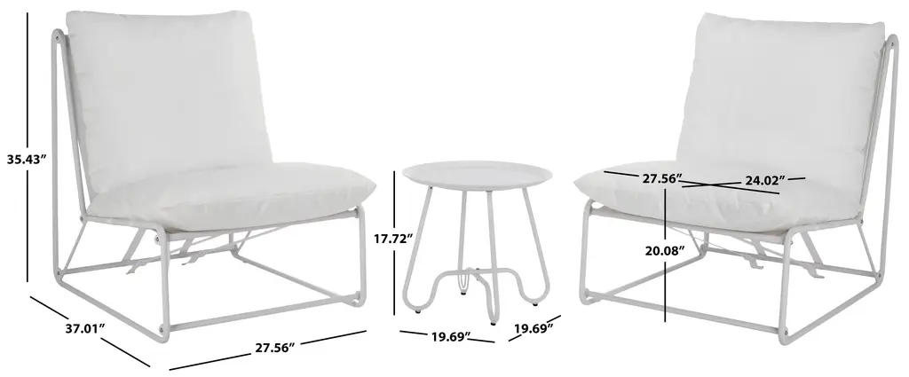 Bring inviting comfort and sleek style to your outdoor space with our Archie 3 piece set. Featuring two stylish accent chairs and a side table, our outdoor living set lends effortless comfort and lasting quality to any al fresco setting. The slender and refined, white steel frame of the chairs offers a sleek and sophisticated style. It is complemented with generously padded beige cushions to promise a comfortable stay. The cushions are neatly tailored in durable and easy-to-care textilene fabric. Our outdoor living set offers indoor-like comfort all year round, creating a perfect spot for lounging and chatting in a balcony, patio, or backyard. Chair Dimensions: 27.56" x 37.01" x 35.43" Table Dimensions: 19.69" x 19.69" x 17.72" Care Instructions: Store outdoor furniture indoors or cover well when not in use. Remove wooden furniture from standing water. Dust regularly with small brush or vacuum. Spills should be taken care of immediately before they harden or stain with a slightly dampened sponge. Do not use bleach solutions.