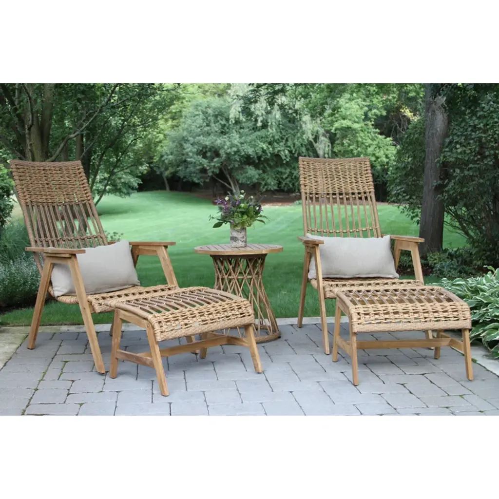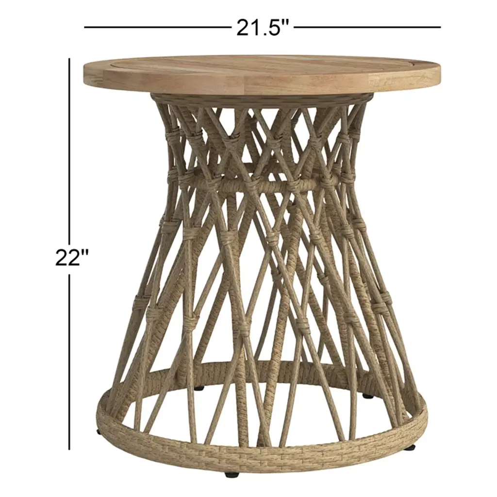 Looking for the perfect place to set your Mai Tais while you take a dive? The Bohemian accent table is the ideal beachside, poolside, or deck table to add a tropical flair to your outdoor space. Crafted from FSC Teak hardwood, this piece resists rust, weather, water, and UV with regular maintenance. Resin wicker wraps around the table frame for a bit of breezy flair.