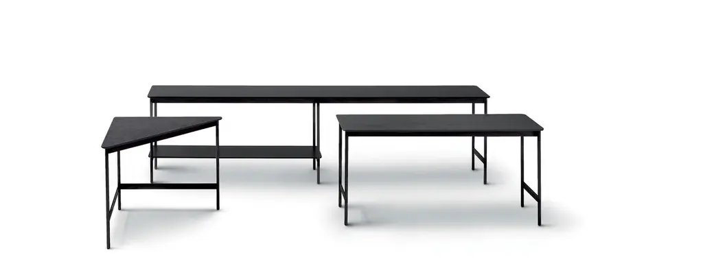 Arflex Capilano Small Table in White Carrara Marble Top by Luca Nichetto. Supported by a light and elegant metal structure, Capilano's series of small tables takes its name from the Capilano Suspension Bridge in Vancouver. Originally developed to complement the Papoose sofa, designed last year, Capilano is a stand-alone series of small and side-tables available in two different configurations: triangular and rectangular. While the frame is metal, the tabletop is made a high-tech ceramic tile, with a smooth and resistant surface.Additional Information:Materials: White Carrara Marble Top and Black Lacquered MetalDimensions: W. 96 x D. 30 x H. 48.5 cmAvailable in other size options: W. 75 x D. 55 x H. 48.5 cm, W. 187.5 x D. 30 x H. 48.5 cmAvailable in other top options: Emperador, Guatemala marble, Fondovalle LavaAvailable in other options for lacquered version: Gold