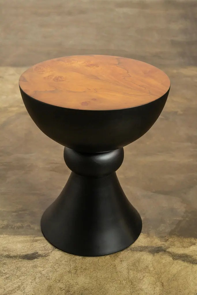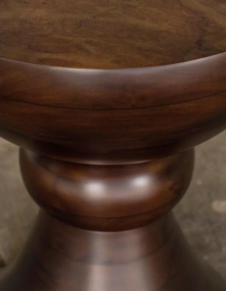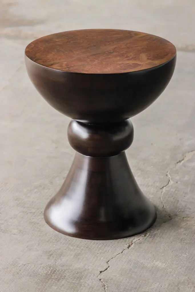 Caliz: A Turned Sculptural Walnut Burl Occasional Side Table from Costantini Design Measurements are 18.5 diameter by 22.5 high. The Caliz occasional table, which can also function as seating, takes its name as well as its form from the Spanish word for chalice. Shown in ebonized Argentine Rosewood with a Walnut Burl top, its sides are usually stained darker than the top, which can be specified in any species of wood or color.Some wood options are Argentine Rosewood, Oak, Walnut, Maple, Cherry, Beech, Elm, Okume, Teak, African Teak, Black Maple, Bubinga, Cerused Oak, Cerused Gray Oak, Gray Oak, Ebony, Macassar Ebony, Striped Macassar Ebony, Walnut Burl, Sycamore, and Zebrawood. Available in matte, semi-gloss, high gloss finish or lacquered. Costantini DesignCostantini is a furniture design and manufacturing company founded in 2002 by artist and designer William C Stuart. The name Costantini comes from his maternal grandfather, a first generation Italian-American. Born in New York City and raised upstate, William majored in studio art at Colgate University with a year abroad in Paris, graduating with honors. In 2001, he traveled to Buenos Aires and fell in love with the culture and craftsmanship instantly. He designed his first collection soon after and opened an art and design gallery in Los Angeles. A decade later, he came home to New York and now has a studio in the famed West Chelsea Arts Building where his works blur the lines between art and functional design. The team of artisans continue to produce the majority of the furniture in Argentina. Aside from private collections, some notable public projects include the Hotel Bel Air, the Sultanate of Oman, Bergdorf Goodman, NoMad Hotels, Four Seasons, Ritz Carlton, and Grand Hyatt. Our work has been featured in publications such as Architectural Digest, Galerie Magazine, the Wall Street Journal, Interior Design Magazine, Luxe, and more. Visit us at our New York studio, open by appointment.