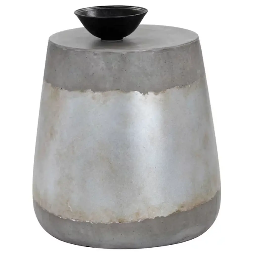 The Aries Indoor/Outdoor Side Table from Sunpan adds a subtle arcing appeal refined enough for indoor spaces and robust enough for covered exterior spaces. A subtly curved, conical side table with a robust concrete construction, the table is industrially simple and strong, while its faux-marble finish adds an inspired element of luxurious surface detail. The simple shape and clear-cut top offer both strength in support and simplicity in display, transforming its environment with inspired and artistic character.