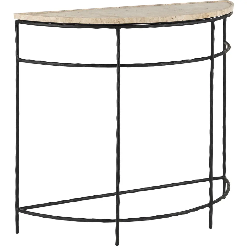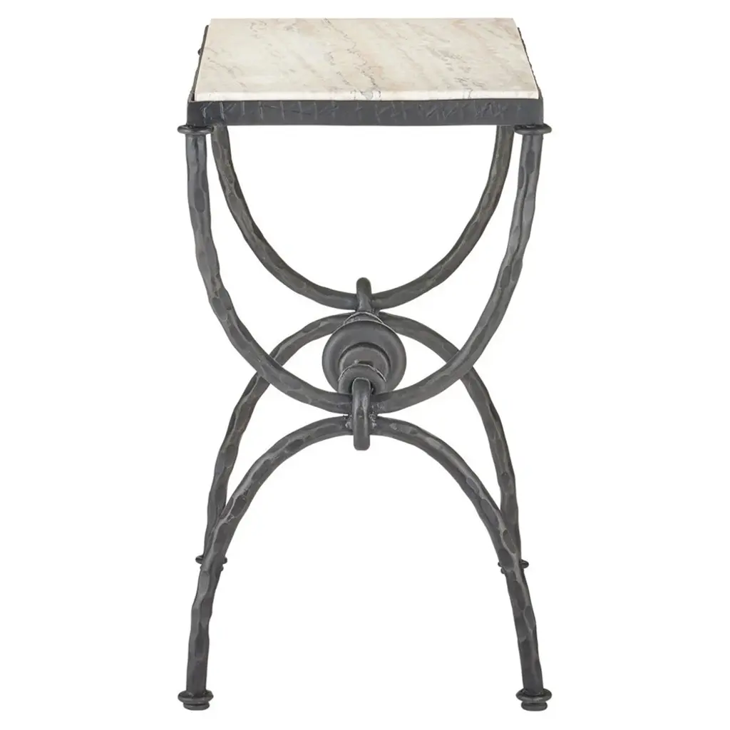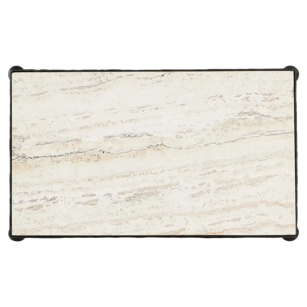 Arlene Updated Traditional White Travertine Bronze Iron Rectangular Side Table