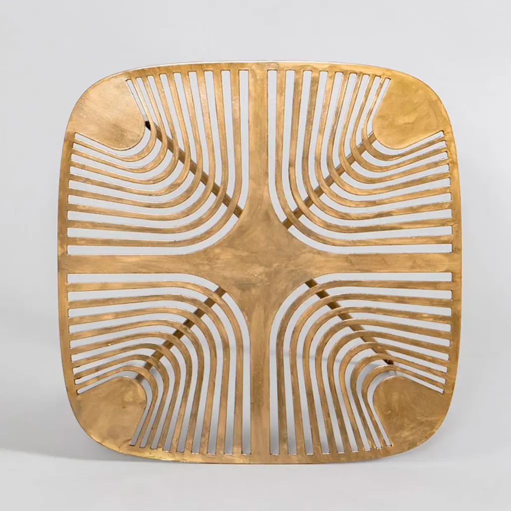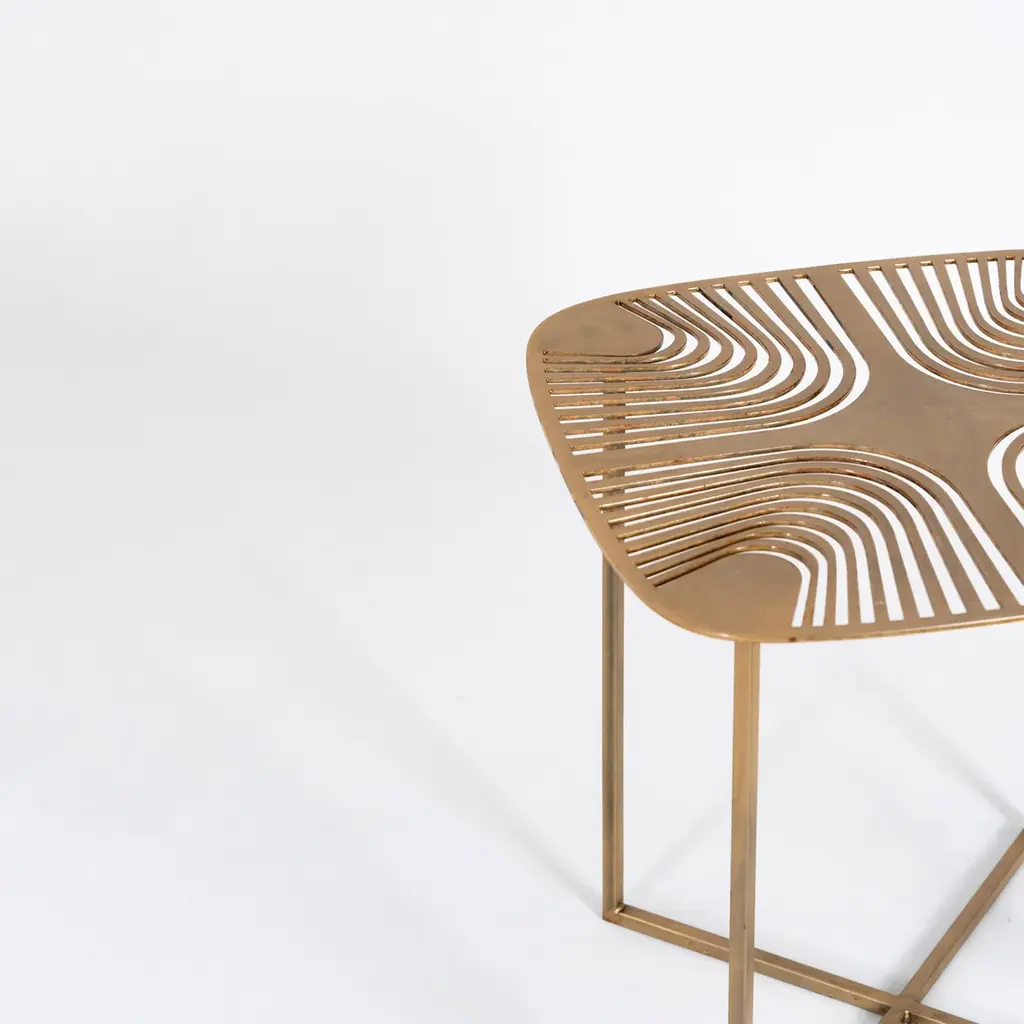 This collection of sound tables, designed by Enrico Girotti, each diverse in shape and in the range of sounds they reflect. A visible path guides the transformation from one form to another, creating a vision in which voids and solids are considered equivalent, and the forms generate and contain. The finish, achieved manually through numerous artisanal steps using brass powders and oils, imparts a unique character to each object.