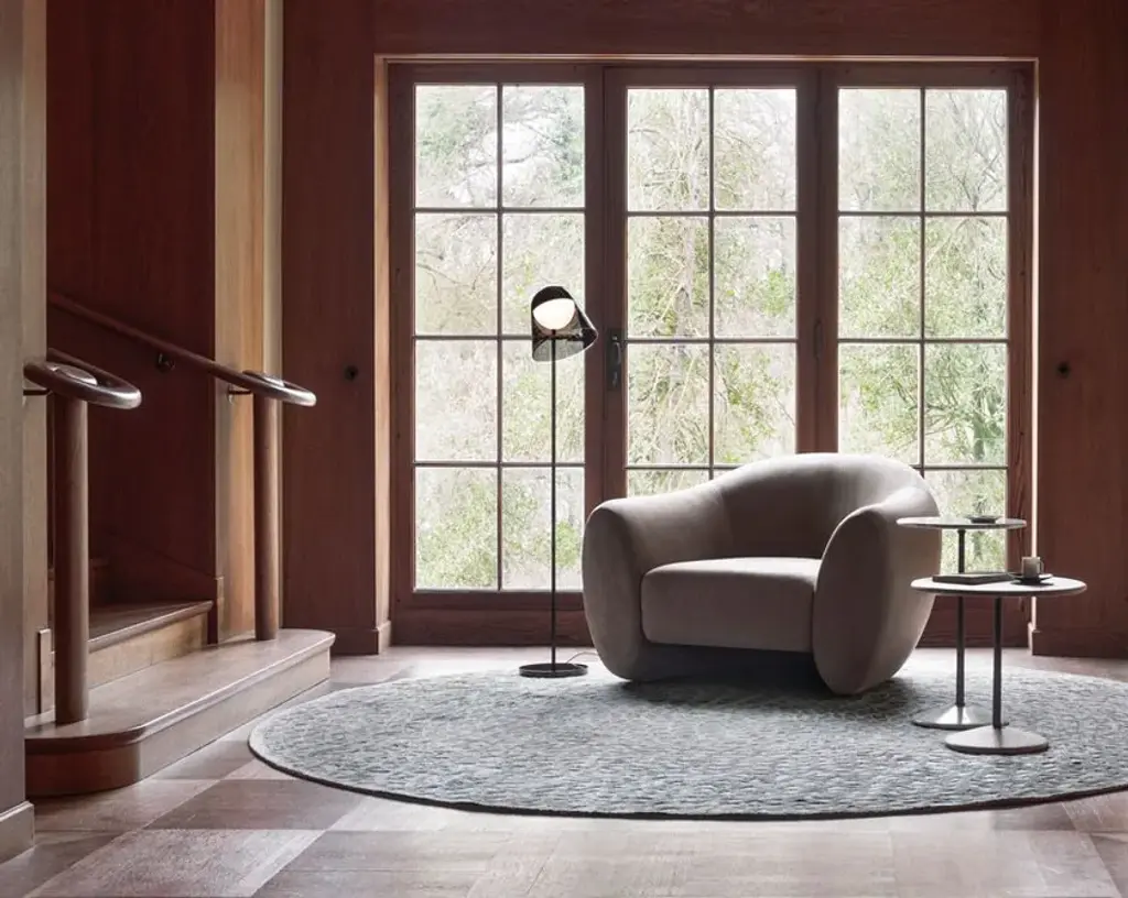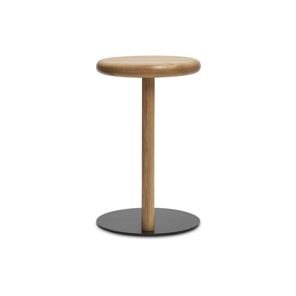 Arnold is a high table with an aluminum structure and a wood base and top.Three geometric shapes (a Line, a Plan, a Volume) and three materials (Metal, Wood, Marble) exploiting the artifice and techniques of "tapering" take the form of:A solid tapered column (in two heights) completed with connections at the base and at the head providing a comfortable support surface characterized by a thin rounded edge and a stable truncated cone base.The several combinations of the three geometries and the three materials are enriched by some dimensional variations and, with the study and fine-tuning of their overall proportions, take their definitive and complete form where the elegant brass column, which draws and solves the connection and attachment between the top and the base, becomes the distinctive element of the project without taking over the other elements that take part in the compositional game.