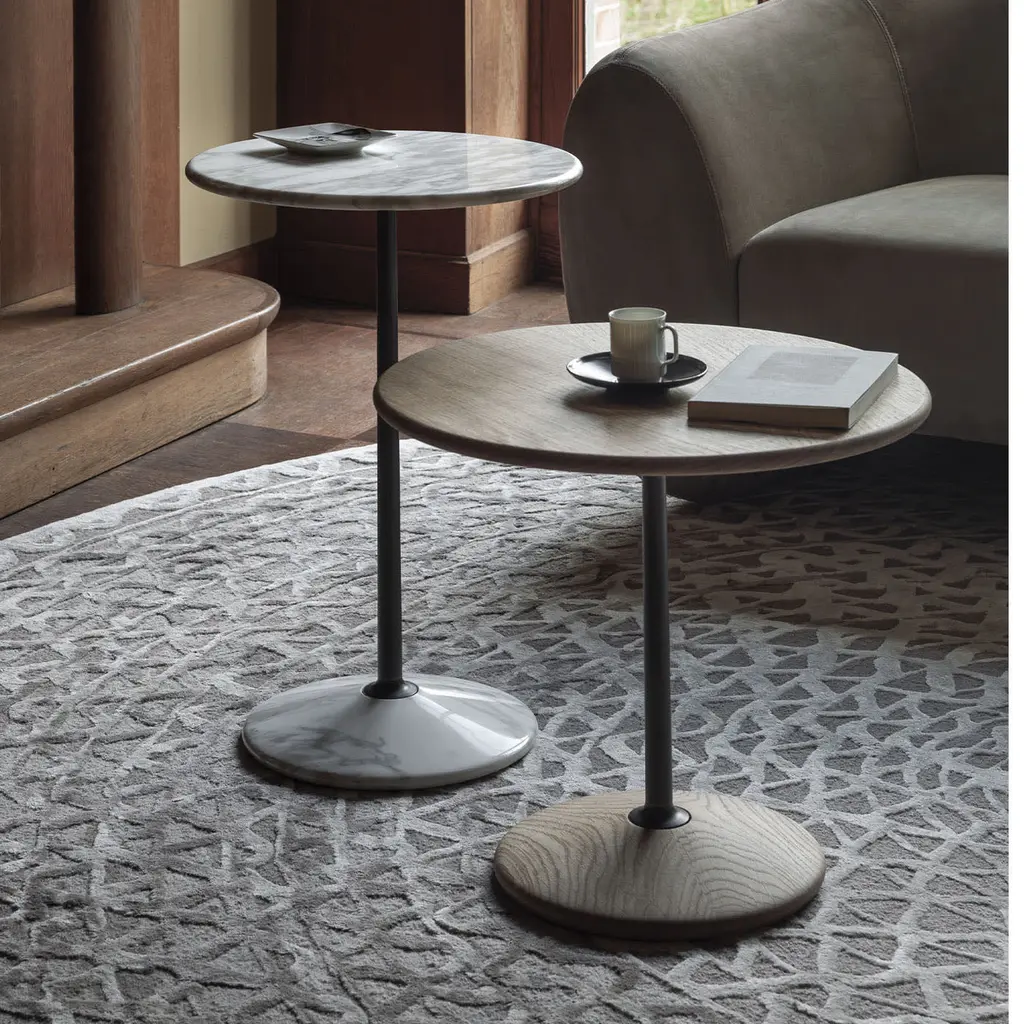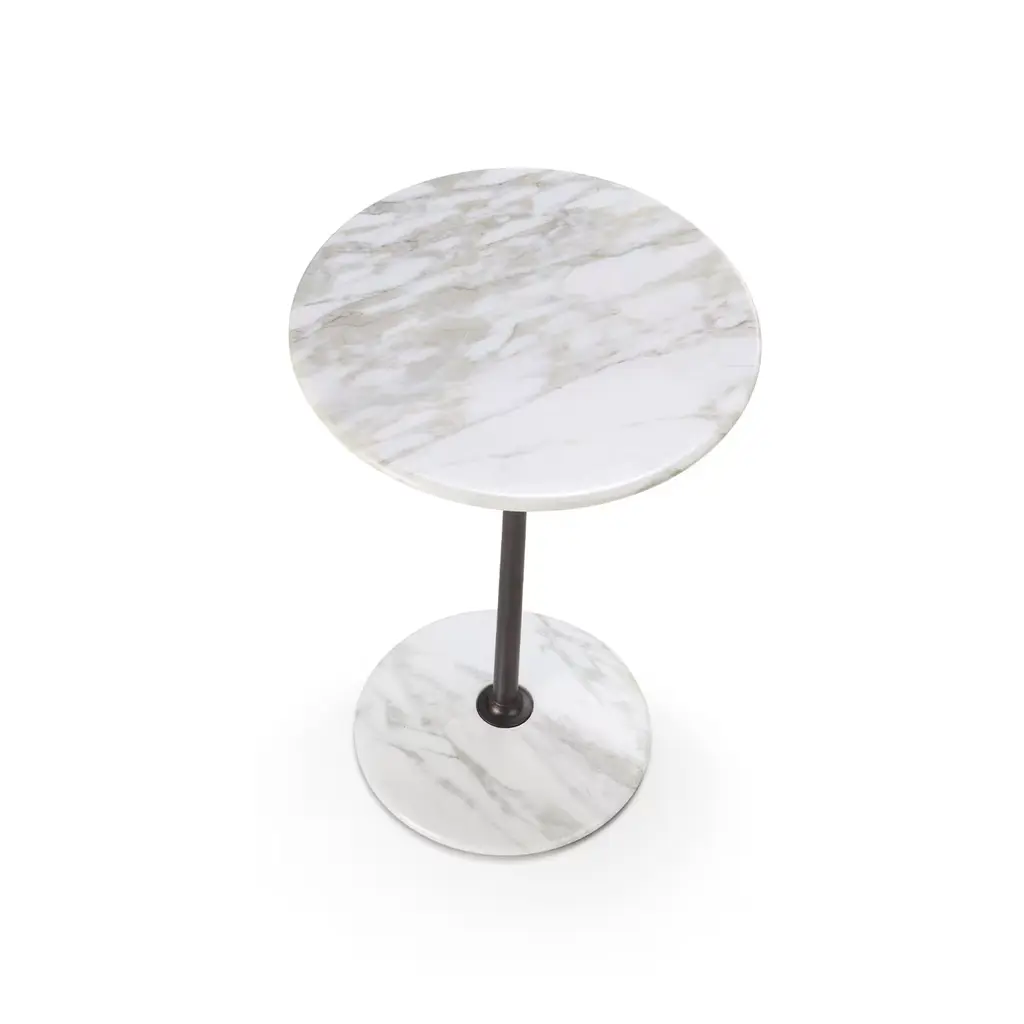 A sophisticated study of minimalism and geometry, this side table is composed of three simple geometric shapes, a line, a flat surface, and a volume. Part of the Arnold series designed by Paolo Rizzato, it is handmade of marble and brass, also available in a wood and brass version. Please consult the Artemest catalog for further details.