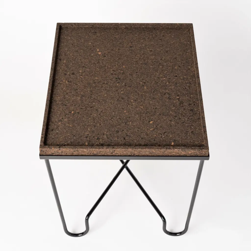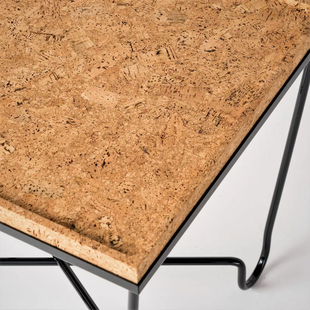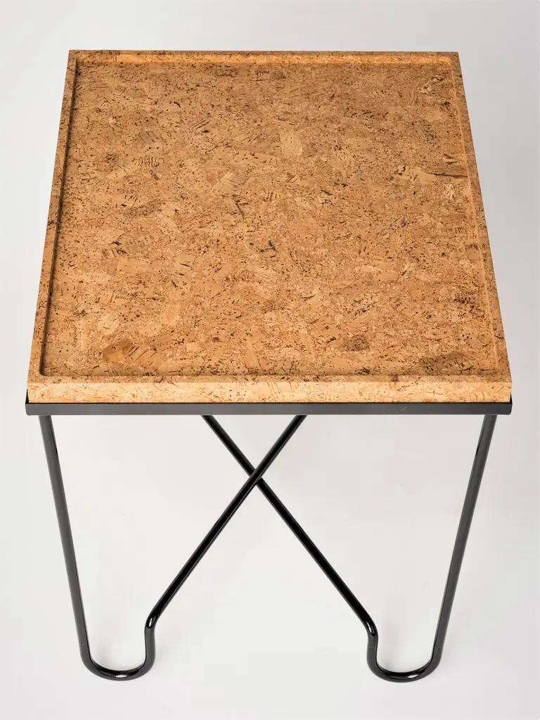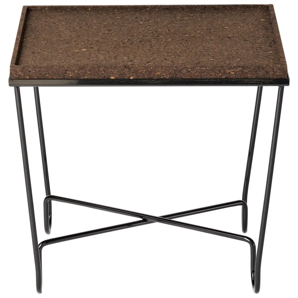 Aronde Black Lacquered Steel Side Table With Burnt Or Natural Cork Top