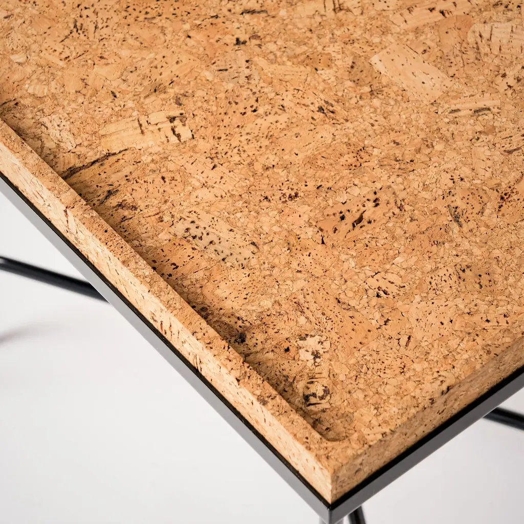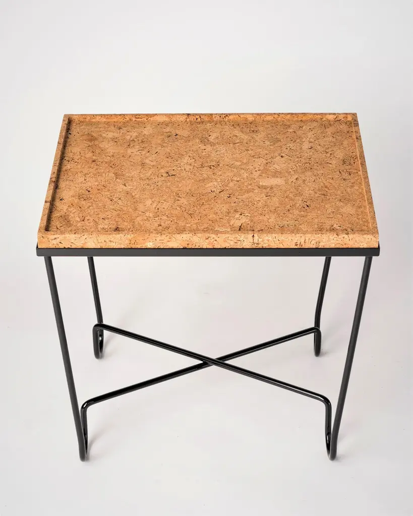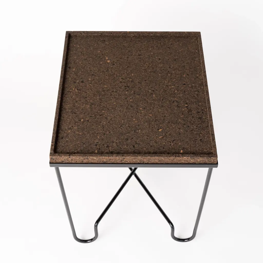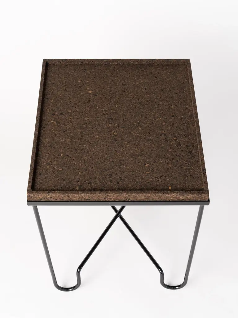 Aronde Black Lacquered Steel Side Table With Burnt Or Natural Cork Top