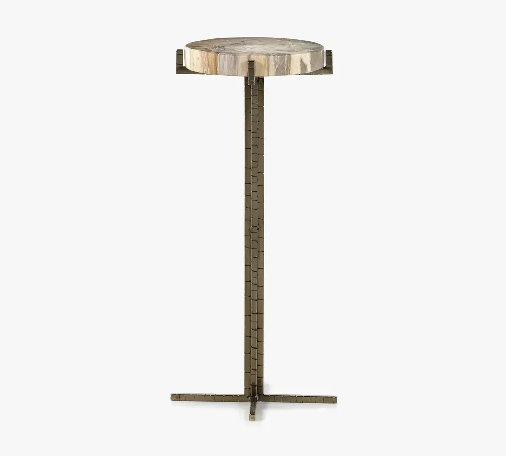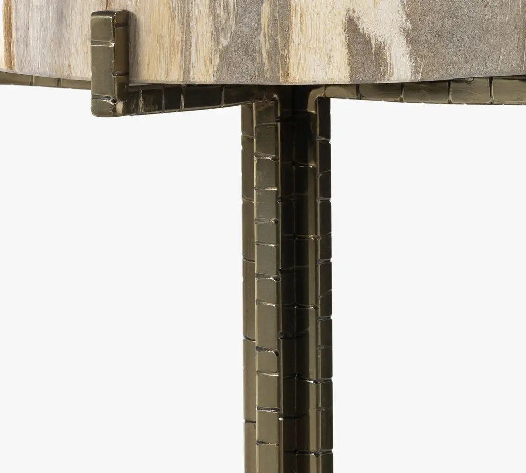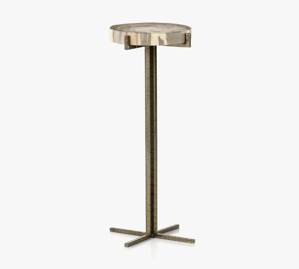 Like a pretty piece of jewelry, a piece of petrified wood is set into a modern steel frame to form this accent table. It offers just enough surface area and not too much. Use it to set down the little things in passing: a pair of drinks, keys, and mail, or use it to display some vibrant greenery.
