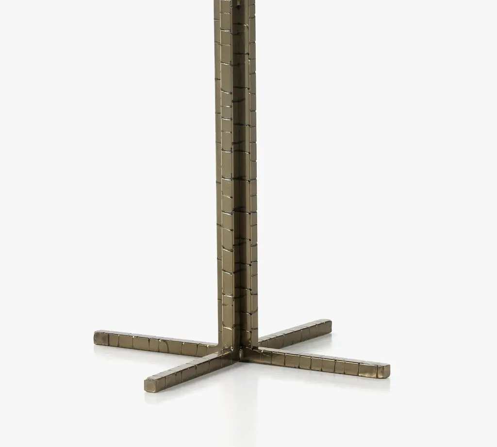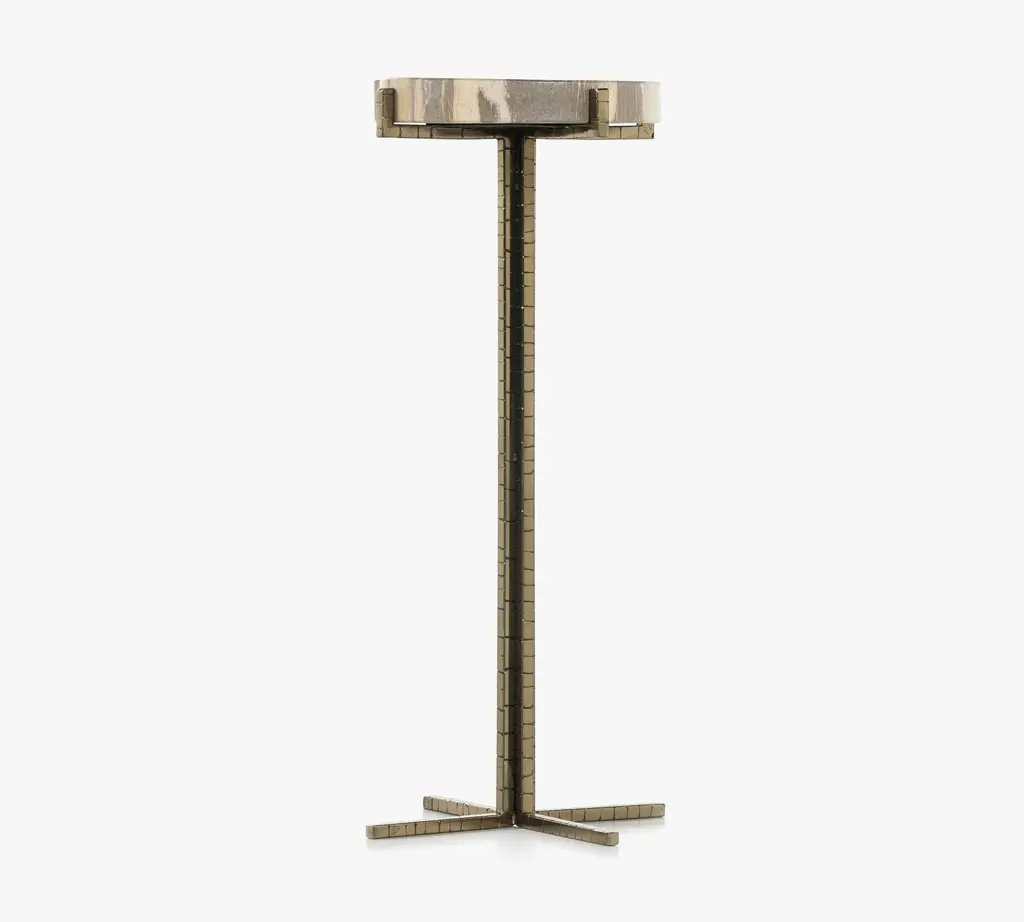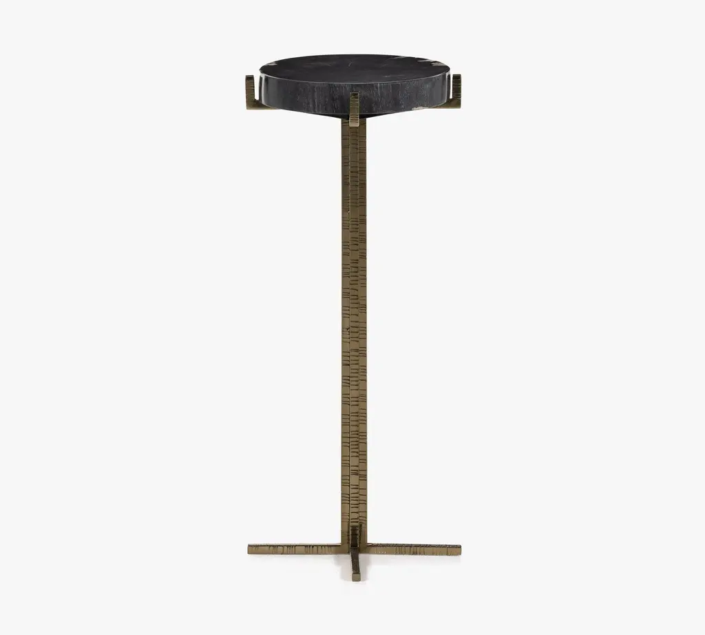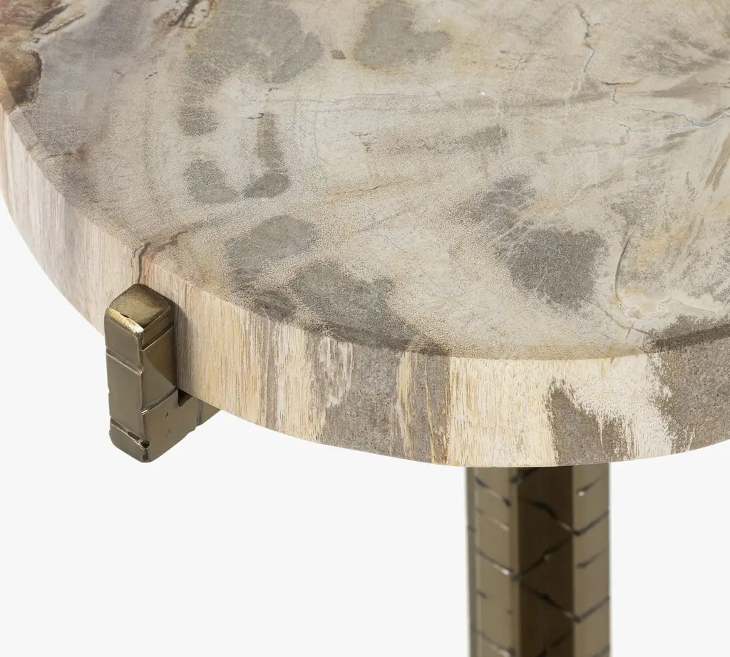 Like a pretty piece of jewelry, a piece of petrified wood is set into a modern steel frame to form this accent table. It offers just enough surface area and not too much. Use it to set down the little things in passing: a pair of drinks, keys, and mail, or use it to display some vibrant greenery.