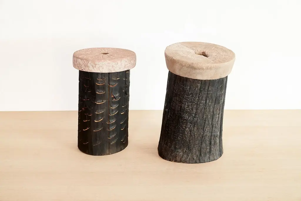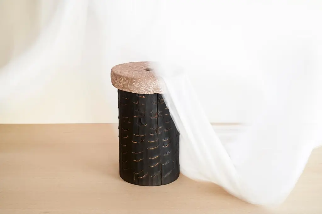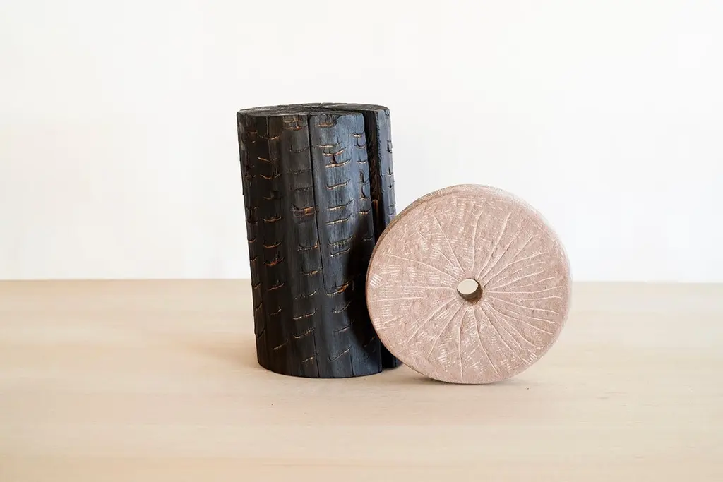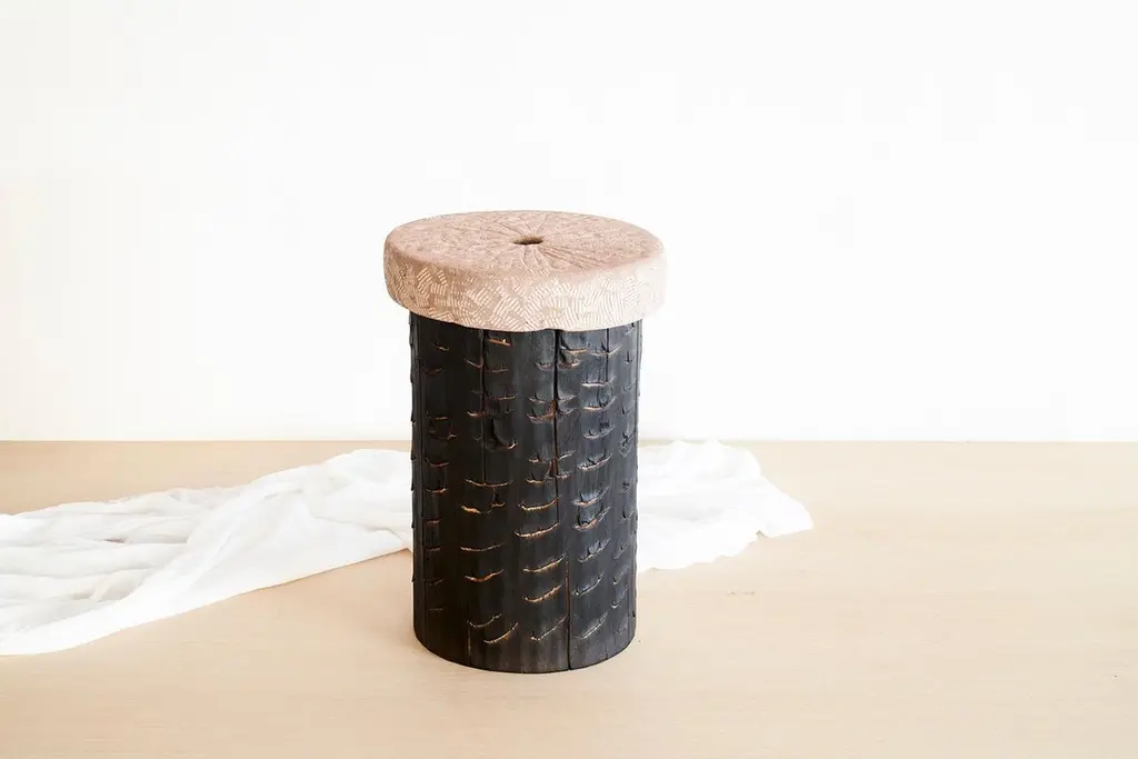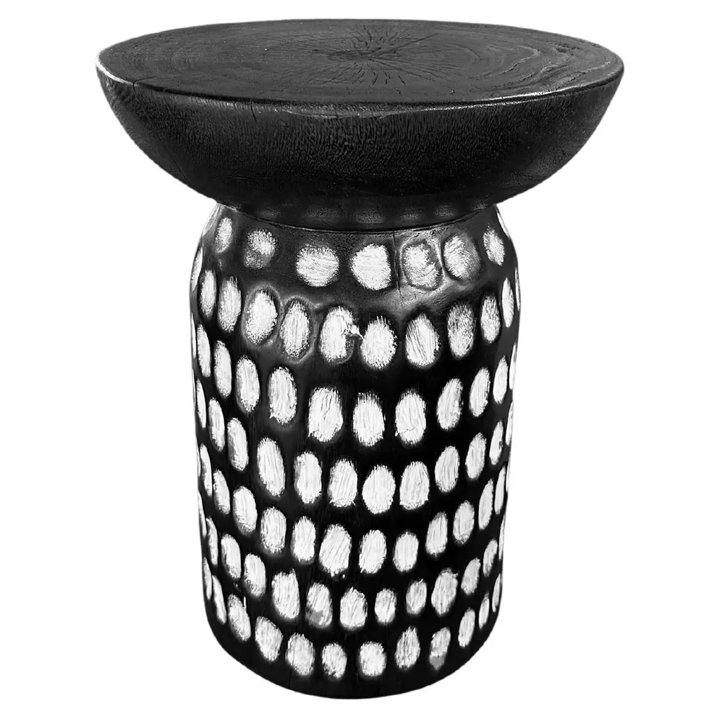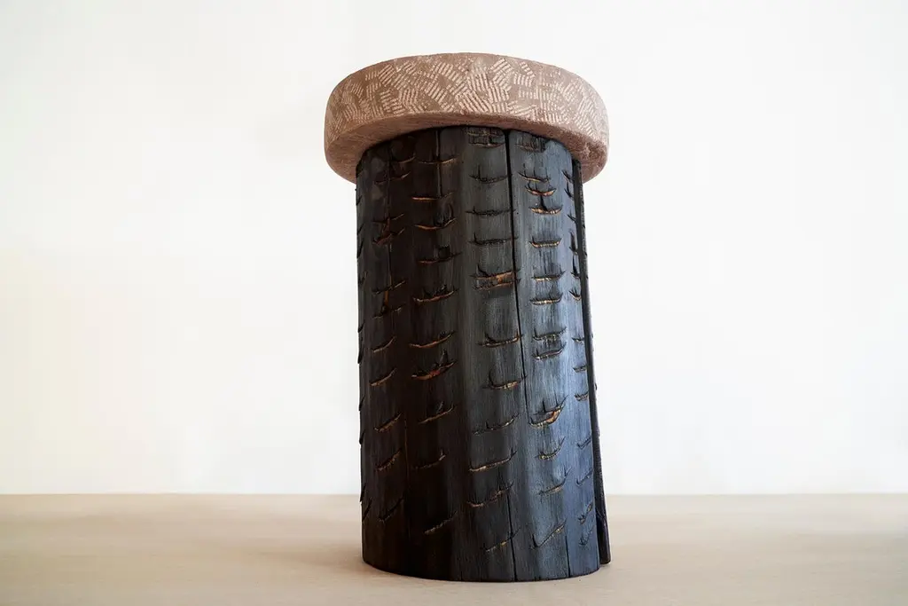 Art Brut Side Table by Jean-Baptiste Van Den HeedeUnique pieceDimensions: D 44 x H 28 cmMaterials: Hand-carved stone and Fire-Treated Wood.Functional sculpture, side table from the ART BRUT collection. Jean-Baptiste Van den Heede defines himself as a cabinetmaker-designer and an artist of academic training and family tradition. He has achieved unique designs of national and international prestige and has several awards in avant-garde furniture.Born in Argentina in 1966, from an Argentine mother and a Belgian father. At 5 years of age he and his family moved to Belgium.To train as a wood professional, he first studied 4 years of carpentry. Then he continued training in cabinetmaking and carving for 5 more years. Always in search of contributing something more to his trade, he studied furniture and antique design, culminating this with the study of Sculpture at the Royal Academies of Fine Arts in Liège (Belgium) and graduating with honors.Work the stone, the wood and experience the forge. From the beginning it is directed towards a search for signs, abstract writings and unrealistic figures in analogy with other “primitive” cultures. He taught drawing and sculpture in Brussels at the private school “la main et l´ esprit” As well as summer courses in Liege (Belgium) “les ateliers d´art contemporain”.In 1995 he went to Barcelona where he taught and investigated the reliefs of different supports such as trees, floors, and especially sewer covers.He searched again analogies between current art and prehistoric, African art, etc.Participated in several exhibitions both at the artistic level and avant-garde design.In 2002, he moved down to Albacete and then to a town in the province where he still works.It is defined as “a search engine without haste or guidelines.” He says: “I only work when I feel a strong and positive inspiration invade me, an energy that I capture from matter, from the air and that I return doing the work until I feel a connection with it.”Private workshop of contemporary art in Letur (Albacete) until 2009.He currently works in his workshop-studio in the Sierra de Madrid (Guadalix de la Sierra) following his career as a cabinetmaker-designer and artist while teaching his trade to students interested in wood.