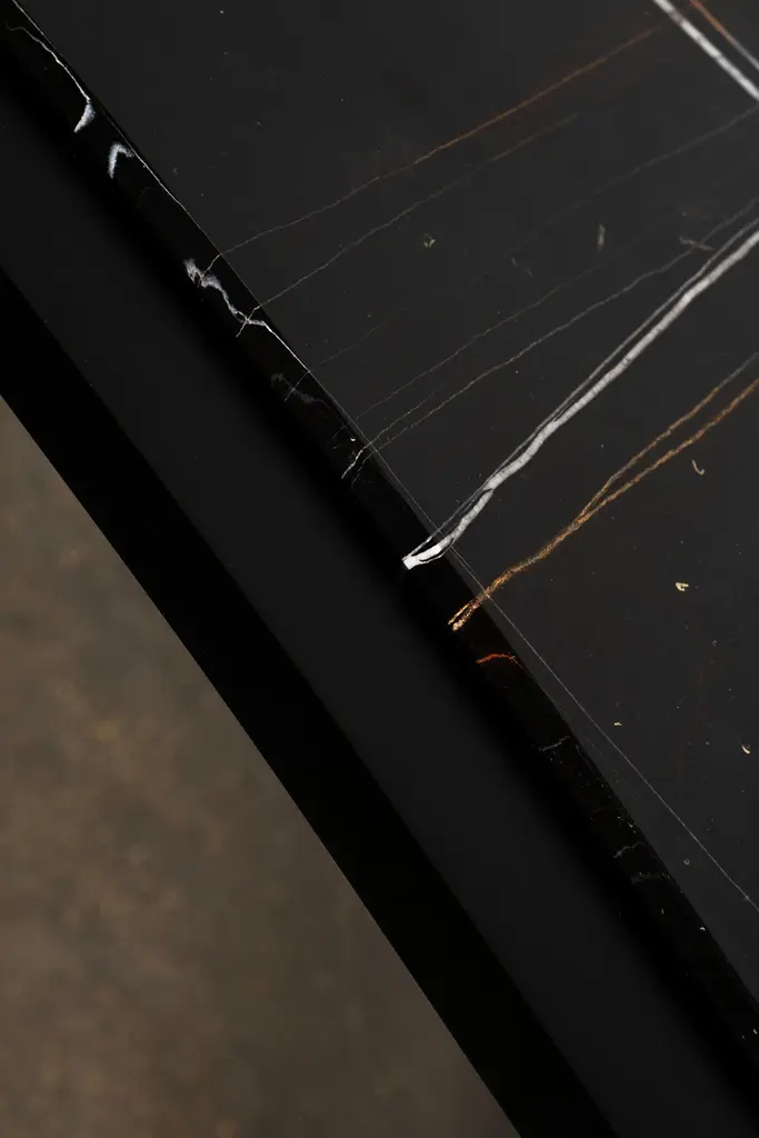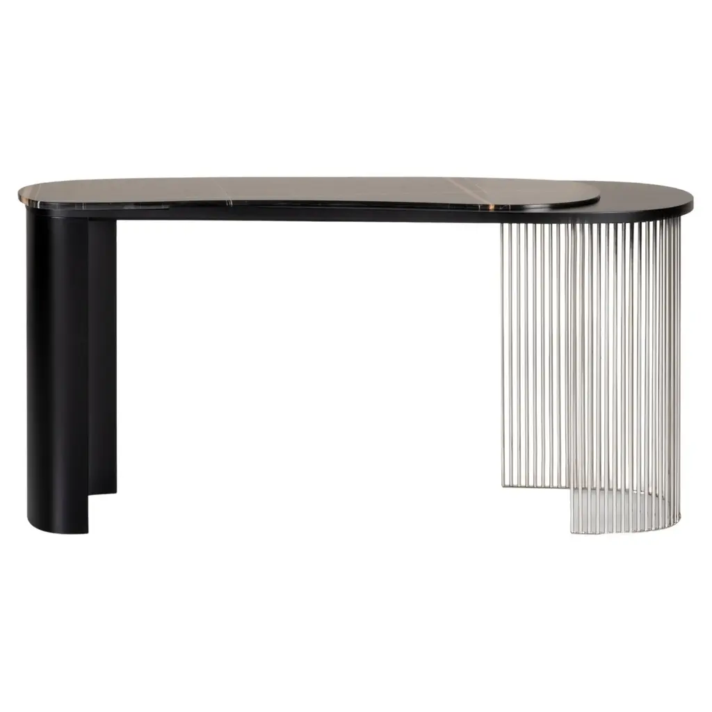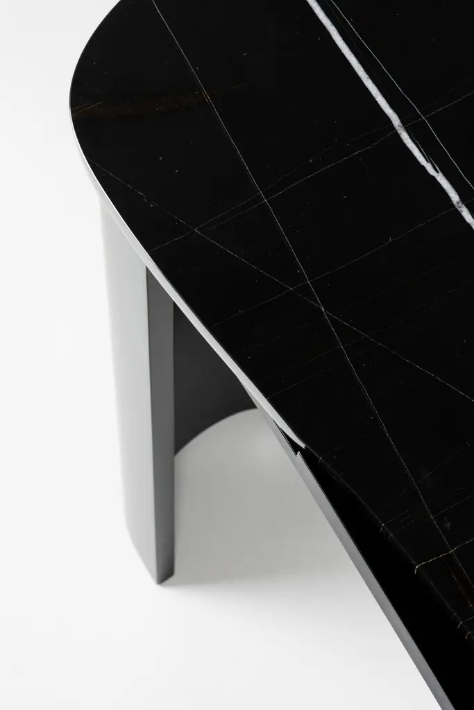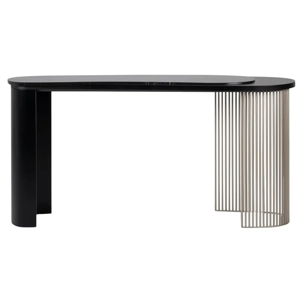 Art Deco Castelo Console, Contemporary Collection, Handcrafted in Portugal - Europe by Greenapple.The Castelo marble console table pays tribute to Portugal’s historic castles, embodying their timeless grandeur and enduring strength through a contemporary lens. Its curved marble tabletop rests gracefully on an architectural base of sleek metal supports, evoking a sense of both stability and refinement. With its thoughtful design and meticulous craftsmanship, the Castelo marble console table stands as an elegant statement piece, effortlessly captivating attention from the very first glance.The Castelo console features a wooden top and one leg lacquered in satin black. Resting atop this surface is an inlaid polished Sahara Noir marble top, in black tones with orange veins. The other leg is composed of metal rods lacquered in gold champagne with a high-gloss varnish.The Castelo console can be customized in terms of dimensions, materials and finishes.Castelo Console Material CodesFI073 Lacquered, Varnished, Gold Champagne, High-GlossFI007 Lacquered, Black, SatinST041 Sahara Noir Marble, Polished, Black-Orange, GlossHandcrafted in Portugal - Europe by GreenappleUnique by design, Crafted by peopleGreenapple transforms contemporary spaces into exclusive narratives of design and craftsmanship. From custom-made furniture to bespoke interiors, each creation is a timeless work of art, shaped by master artisans who honor centuries-old techniques.Founded in 2005 by Sérgio Rebola and Rute Martins, Greenapple has earned global recognition among high-end clientele and leading design firms. While Rute designs each unique piece, Sérgio ensures uncompromising quality from design to production and from production to your home. We provide a seamless experience, offering short production lead times, worldwide delivery within 7 to 10 days, and white-glove service upon request.For U.S. clients, we can handle all customs clearance, cover duties, and offer white-glove service as well upon request.Entry Table, Foyer Table, Hall Table, Pier Table