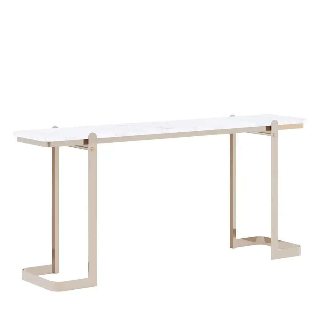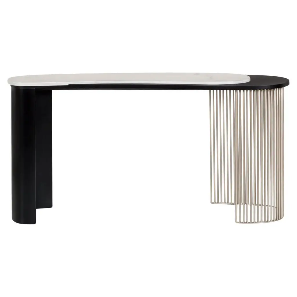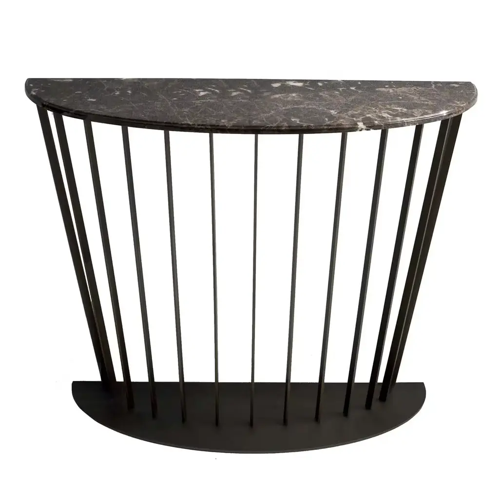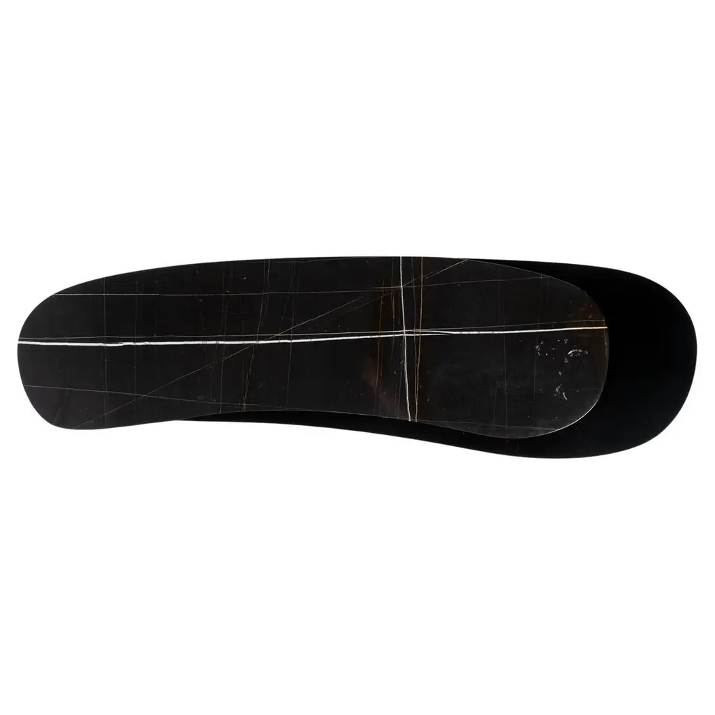 Art Deco Castelo Console, Contemporary Collection, Handcrafted in Portugal - Europe by Greenapple.The Castelo marble console table pays tribute to Portugal’s historic castles, embodying their timeless grandeur and enduring strength through a contemporary lens. Its curved marble tabletop rests gracefully on an architectural base of sleek metal supports, evoking a sense of both stability and refinement. With its thoughtful design and meticulous craftsmanship, the Castelo marble console table stands as an elegant statement piece, effortlessly captivating attention from the very first glance.The Castelo console features a wooden top and one leg lacquered in satin black. Resting atop this surface is an inlaid polished Sahara Noir marble top, in black tones with orange veins. The other leg is composed of metal rods lacquered in gold champagne with a high-gloss varnish.The Castelo console can be customized in terms of dimensions, materials and finishes.Castelo Console Material CodesFI073 Lacquered, Varnished, Gold Champagne, High-GlossFI007 Lacquered, Black, SatinST041 Sahara Noir Marble, Polished, Black-Orange, GlossHandcrafted in Portugal - Europe by GreenappleUnique by design, Crafted by peopleGreenapple transforms contemporary spaces into exclusive narratives of design and craftsmanship. From custom-made furniture to bespoke interiors, each creation is a timeless work of art, shaped by master artisans who honor centuries-old techniques.Founded in 2005 by Sérgio Rebola and Rute Martins, Greenapple has earned global recognition among high-end clientele and leading design firms. While Rute designs each unique piece, Sérgio ensures uncompromising quality from design to production and from production to your home. We provide a seamless experience, offering short production lead times, worldwide delivery within 7 to 10 days, and white-glove service upon request.For U.S. clients, we can handle all customs clearance, cover duties, and offer white-glove service as well upon request.Entry Table, Foyer Table, Hall Table, Pier Table