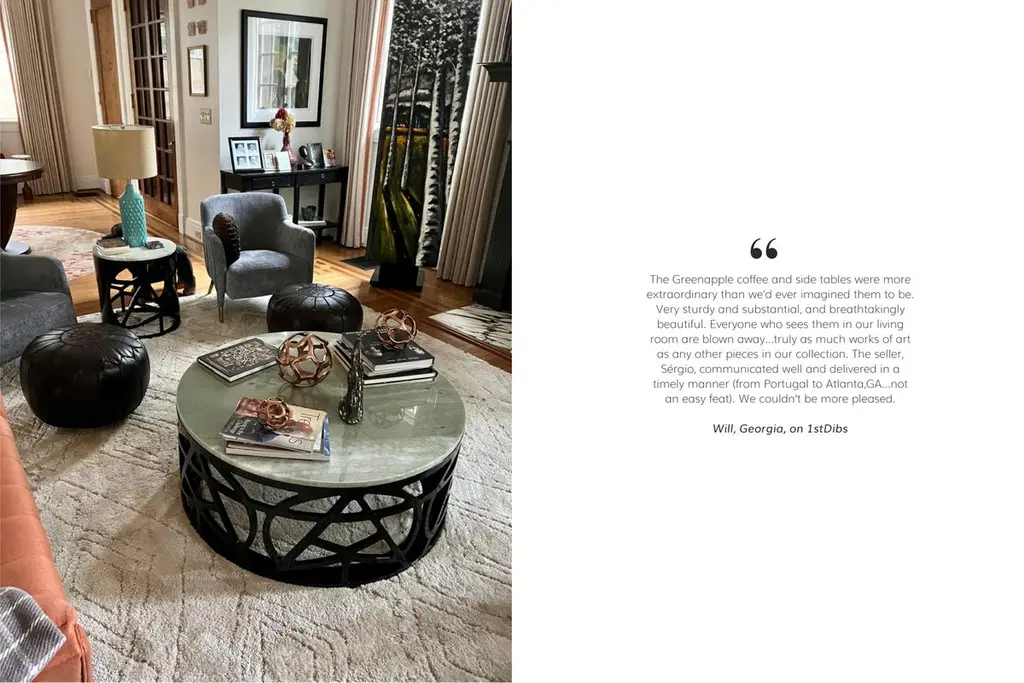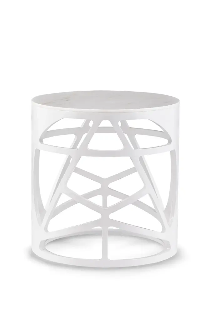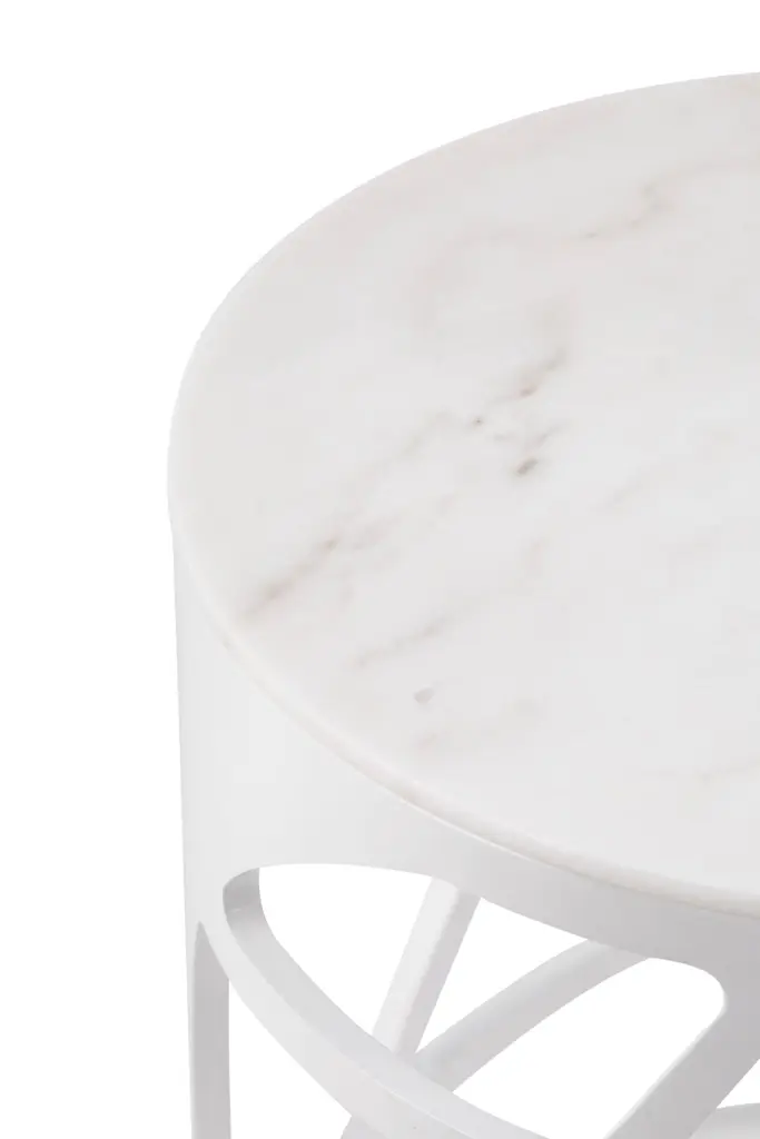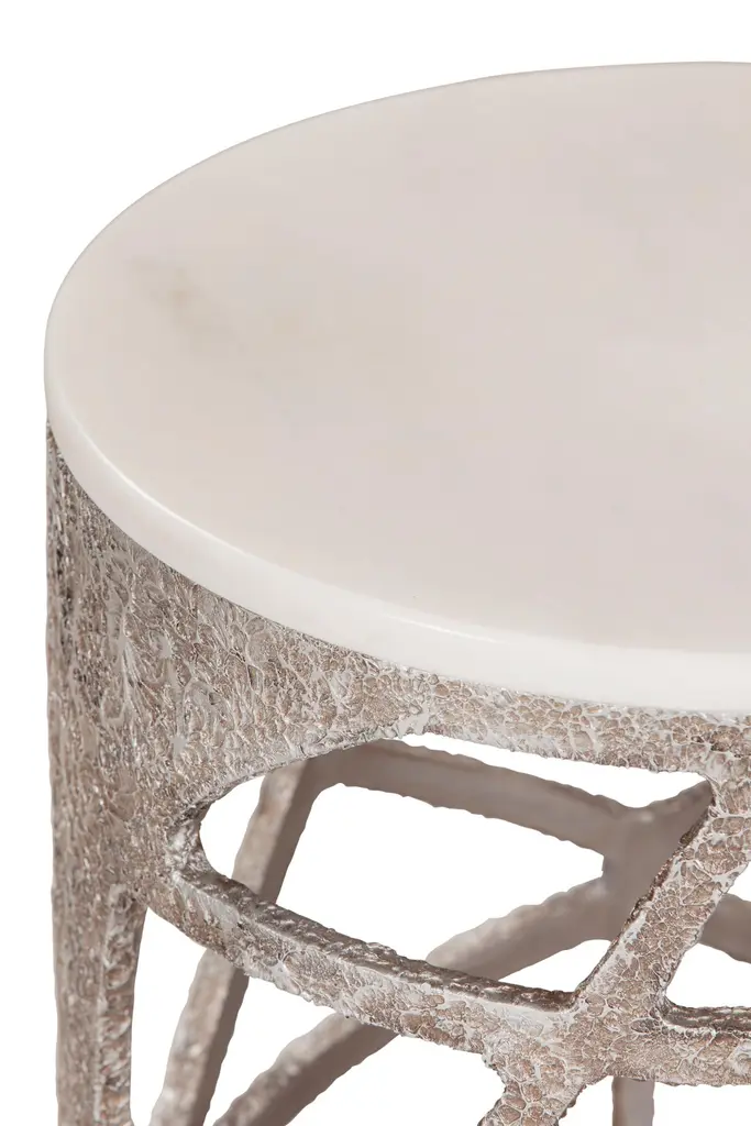 Pyrite side table, Modern Collection, Handcrafted in Portugal - Europe by GF Modern.The Pyrite side table draws inspiration from the captivating allure of pyrite crystals, effortlessly drawing the eye to its elegant and noble design. Crafted to be the room’s centerpiece, the Pyrite side table elevates the space to realms of modern sophistication.Pyrite Side Table Material CodesFI029 Silver bronze powder with a textured patina effect; high-gloss finishST008 Calacatta Bianco marble; polishedHandcrafted in Portugal - Europe by GreenappleUnique by design, Crafted by peopleFounded in 2005 by Sérgio Rebola and Rute Martins, Greenapple designs and produces in-house luxury furniture for exclusive customers worldwide.Our own in-house production facility allows us to be obsessed with detail, and gives us the freedom to dedicate ourselves to the most demanding tailor-made and customised work. As Rute designs all the unique pieces, Sérgio assures the high-quality standards through the whole process - from design to production; from production to your home. Fine craftsmanship, whether perfected by experienced hands or state-of-the-art machinery is quintessential in delivering top quality experiences.