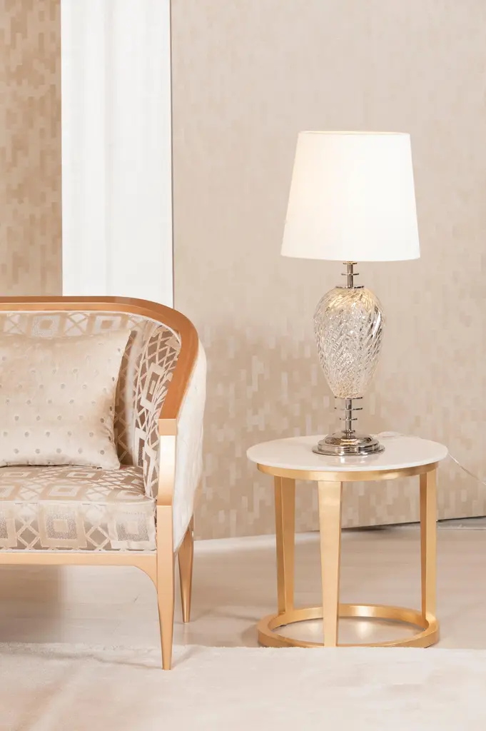 Rubi side table, Modern Collection, Handcrafted in Portugal - Europe by GF Modern.Like a sparkling ruby ring, our magnificent Rubi side table ties in with the Art Deco style by representing the dawn of a new modern era.The contrast between the Calacatta Bianco marble structure on the top and the gold leaf gilding makes an excellent combination. With its beautiful, handmade gilding, Rubi is an eye-catcher in any living room.Rubi side table Material CodesFI001 Gold leaf; high-gloss finishST008 Calacatta Bianco marble; polishedHandcrafted in Portugal - Europe by GreenappleUnique by design, Crafted by peopleFounded in 2005 by Sérgio Rebola and Rute Martins, Greenapple designs and produces in-house luxury furniture for exclusive customers worldwide.Our own in-house production facility allows us to be obsessed with detail, and gives us the freedom to dedicate ourselves to the most demanding tailor-made and customised work. As Rute designs all the unique pieces, Sérgio assures the high-quality standards through the whole process - from design to production; from production to your home. Fine craftsmanship, whether perfected by experienced hands or state-of-the-art machinery is quintessential in delivering top quality experiences.