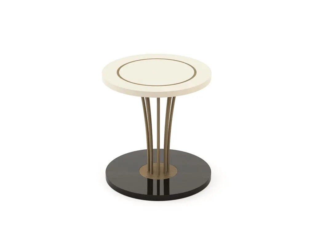 The Sublime collection is influenced by Art Deco, born under the burst of bright colors and shades, mirroring the elegance and glamour of the 1920s and aiming to be the inspiration of life. This collection is characterized by the use of brass, a noble and sophisticated Material, and the lacquered surfaces, which provide the piece with the representative shine of Art Deco. Pieces with voluptuous lines, but nevertheless comfortable and cozy, are what define Art Deco, as well as our collection.The beige lacquered top contrasts with the identical black base and the luxurious detail of the mate brass foot, making the Sublime coffee table an exclusive piece. With its glossy details, this table is not only practical but also a contemporary decorative element for any environment. The Sublime collection is influenced by Art Deco, born under the burst of bright colors and shades, mirroring the elegance and glamour of the 1920s and aiming to be the inspiration of life. This collection is characterized by the use of brass, a noble and sophisticated Material, and the lacquered surfaces, which provide the piece with the representative shine of Art Deco. Pieces with voluptuous lines, but nevertheless comfortable and cozy, are what define Art Deco, as well as our collection.As the product can be personalised, the image of the presentation is merely illustrative.Notes: Lacquered metal or other metals - Price on request.