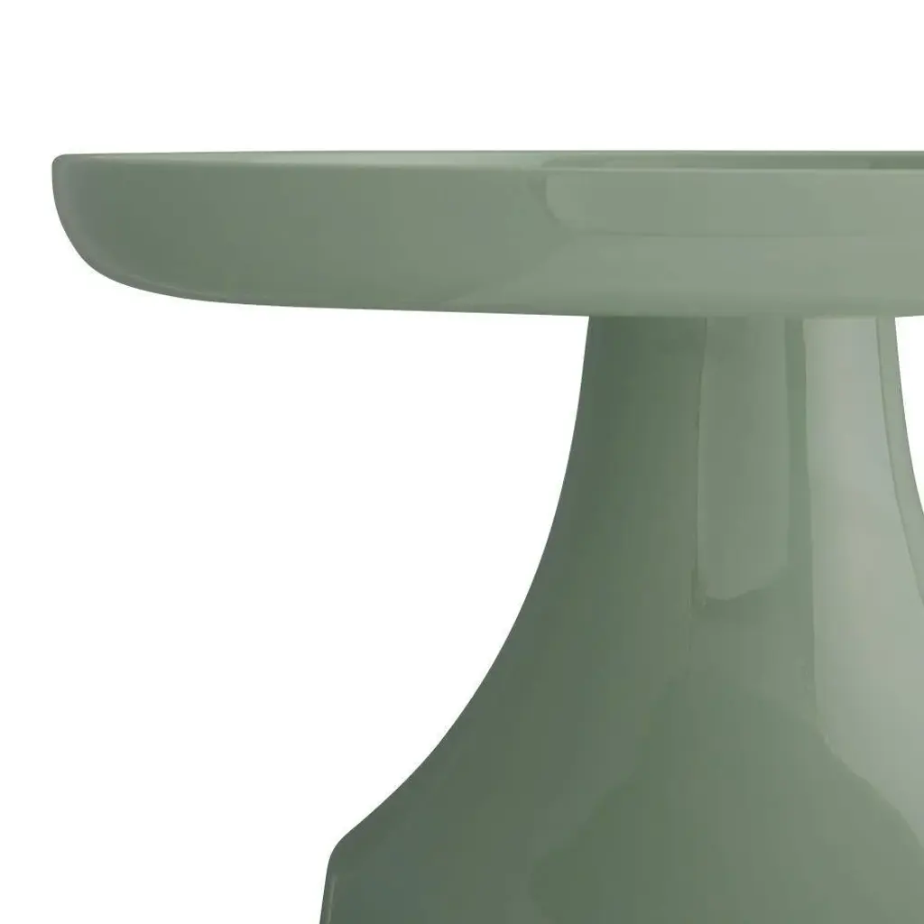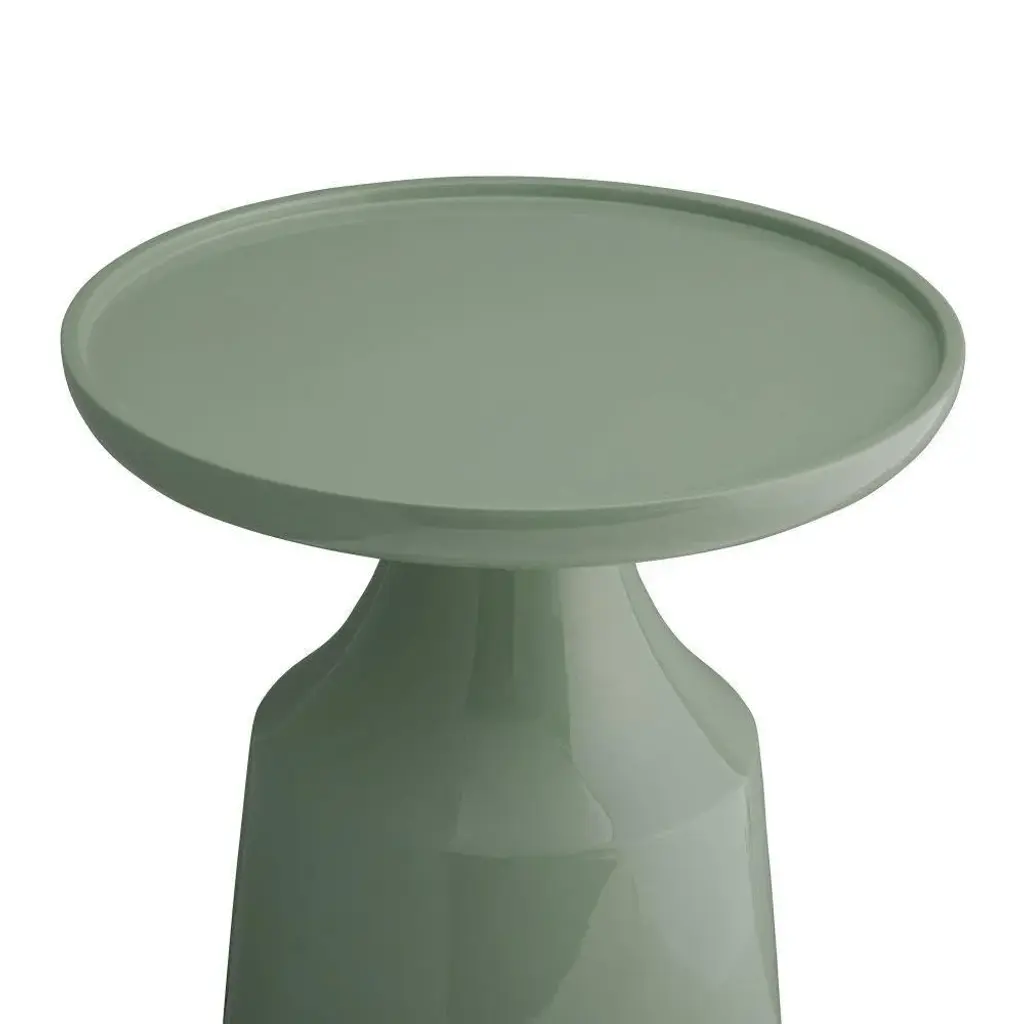 Contemporary and modern design elements take shape in our Turin End Table. A round top framed by a thick rim rests atop an exaggerated bell-shaped base, drawing attention to the sculptural aspect of the unique construction of the lacquer table in a fresh spa finish. Artistic in form and functional by design, this table showcases as an architectural element.