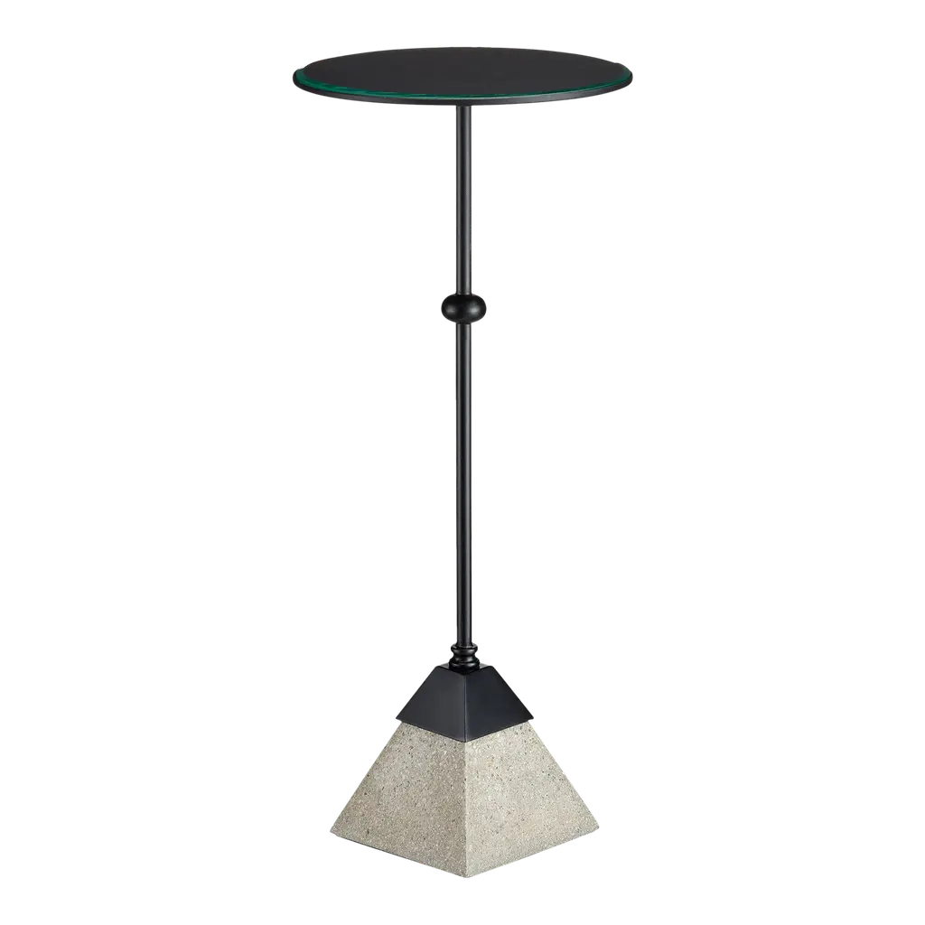 The Aurthur Accent Table Features A Thick Crystal Top, Honed And Unfilled Travertine, Paired With Bronze Finished Iron. The Fusion Of These Elements Has Given This Table An Organic And Sophisticated Aesthetic Ready To Enhance Any Room.