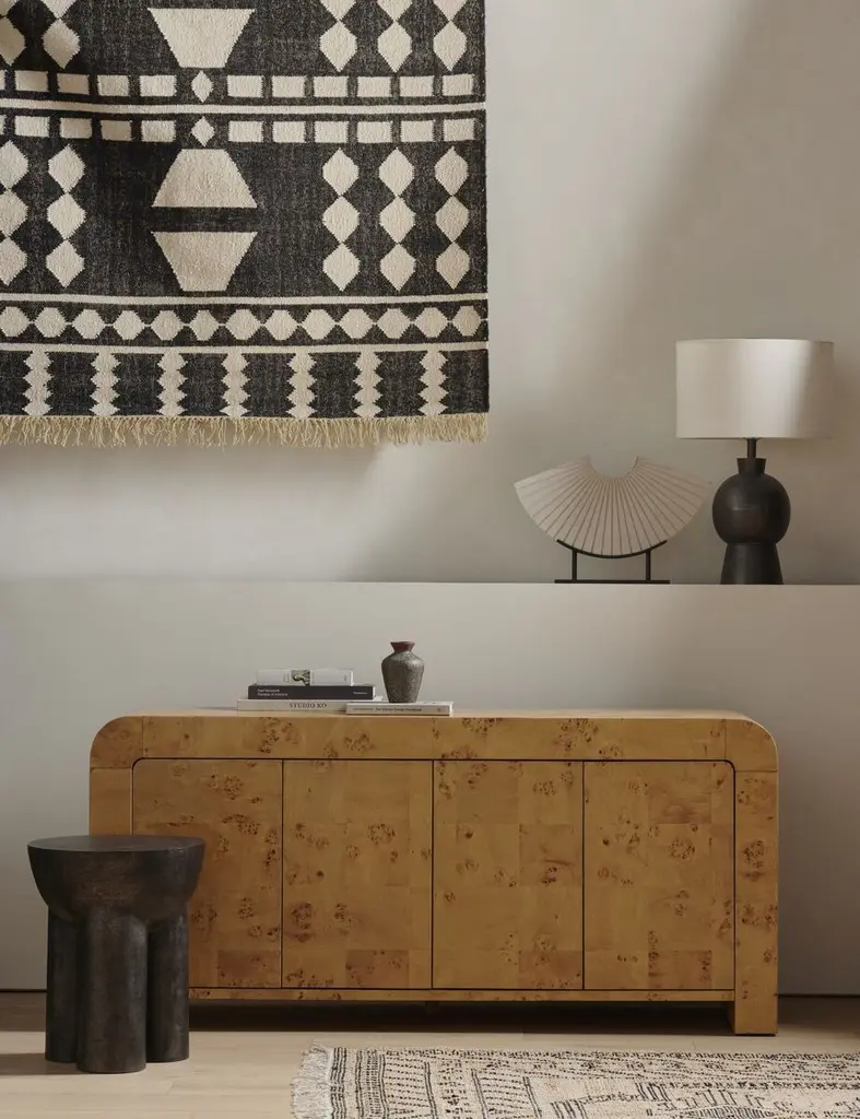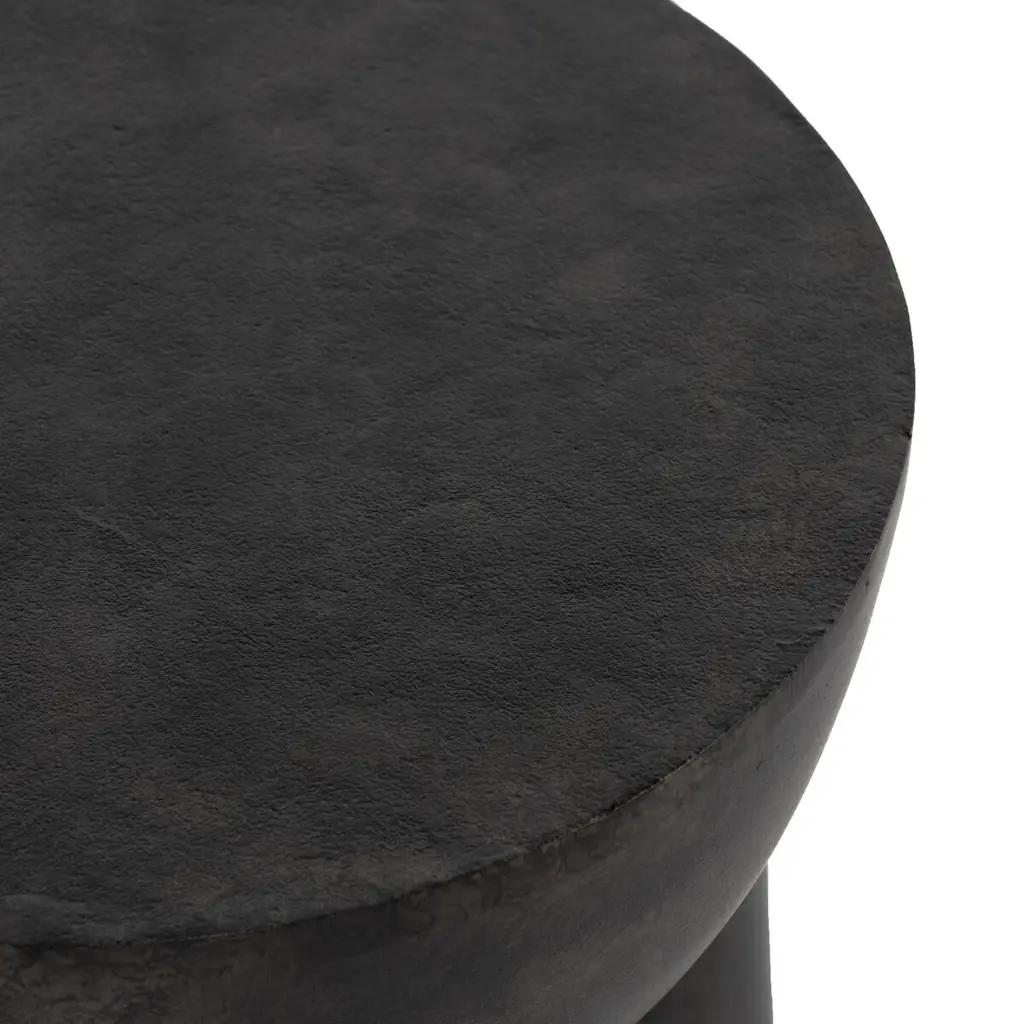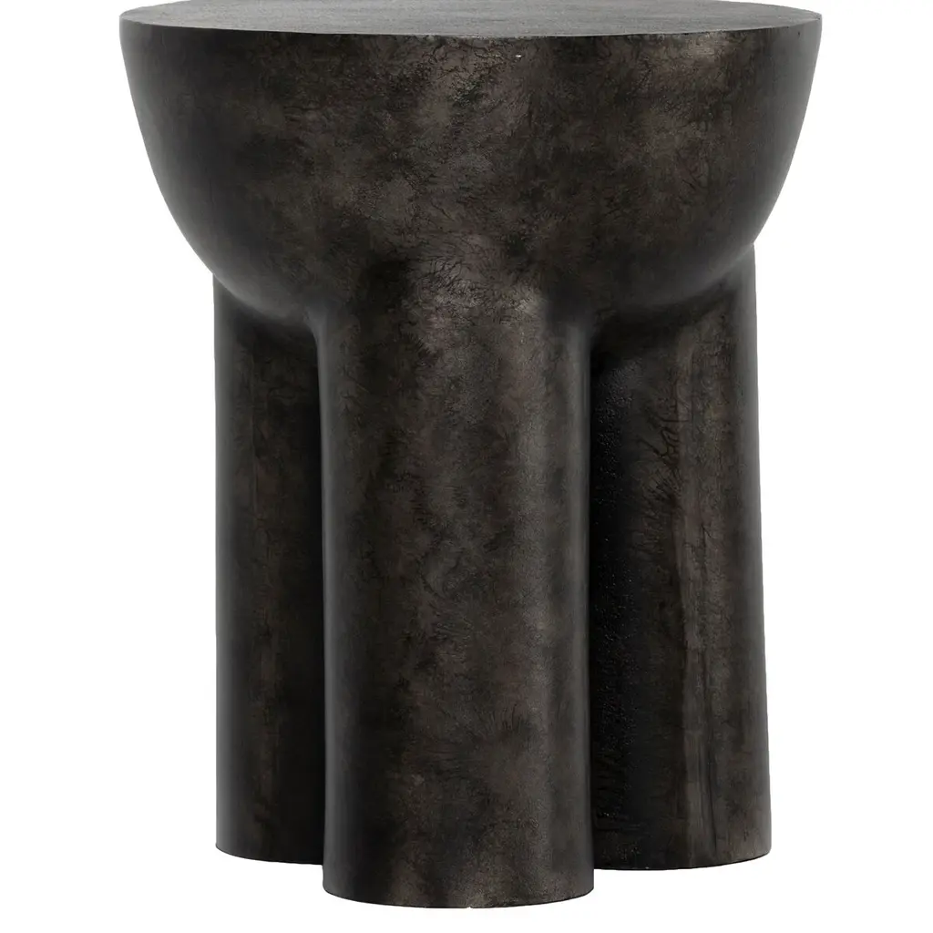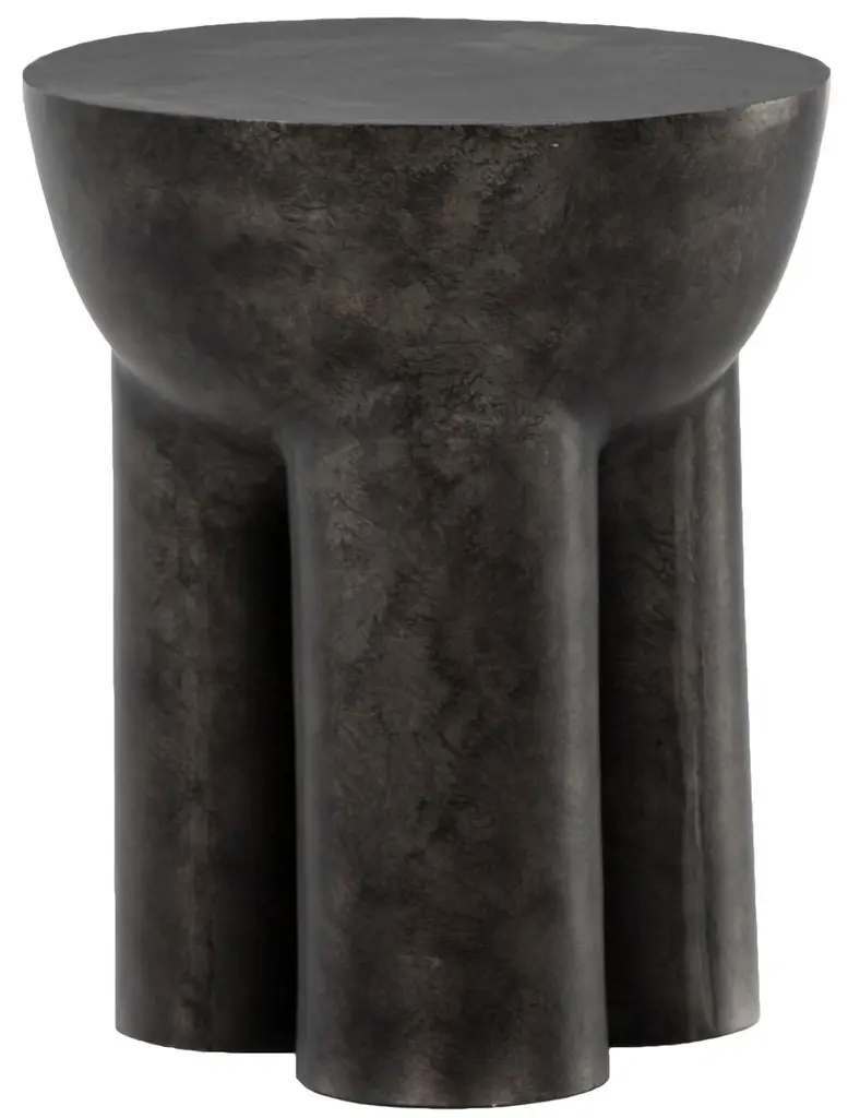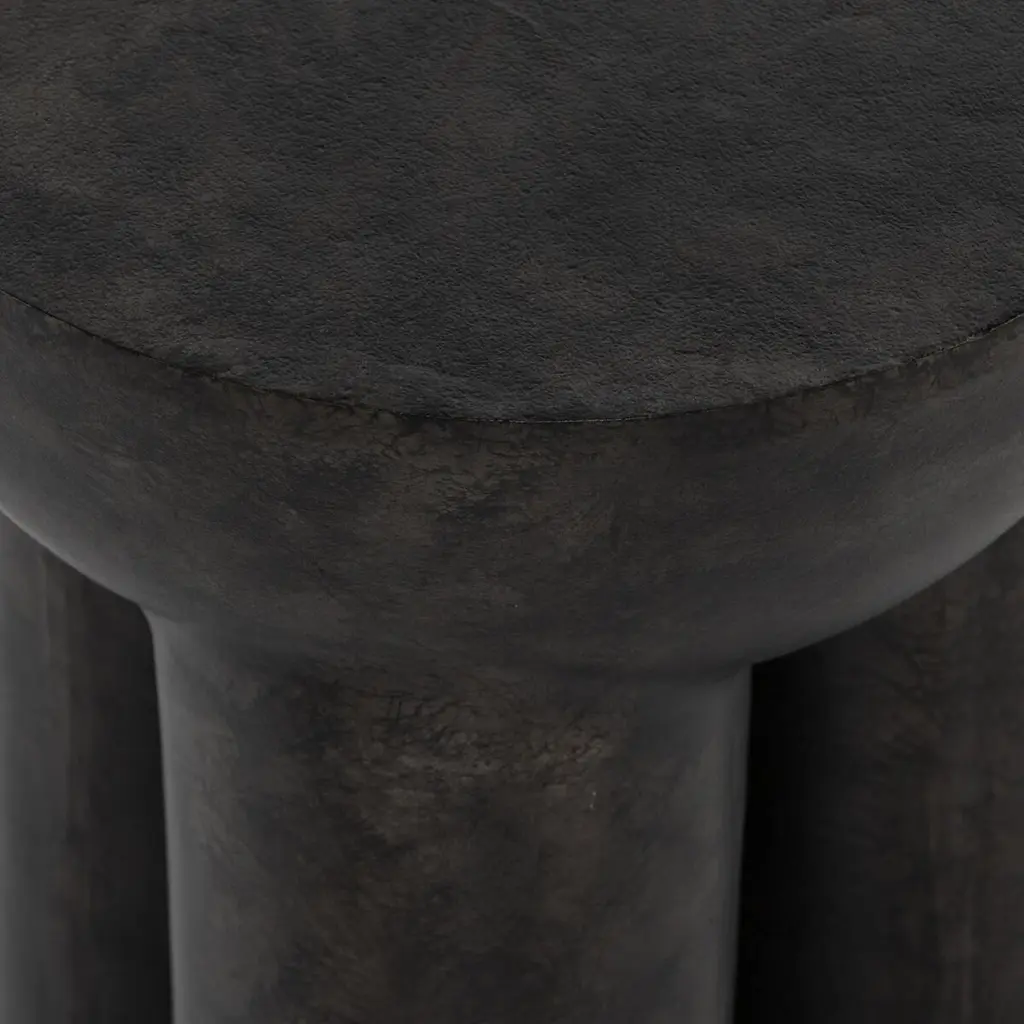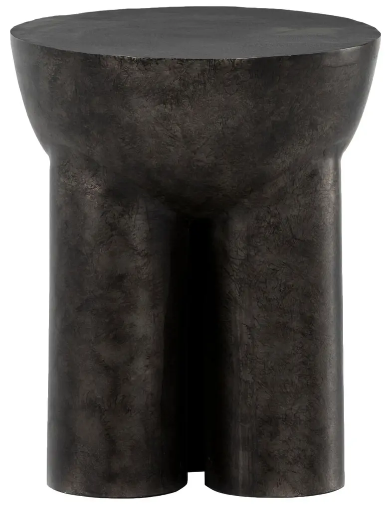 As much a sculpture as it is a side table, this piece is crafted of durable yet lightweight aluminum given a black finish that accentuates the coallike texture.