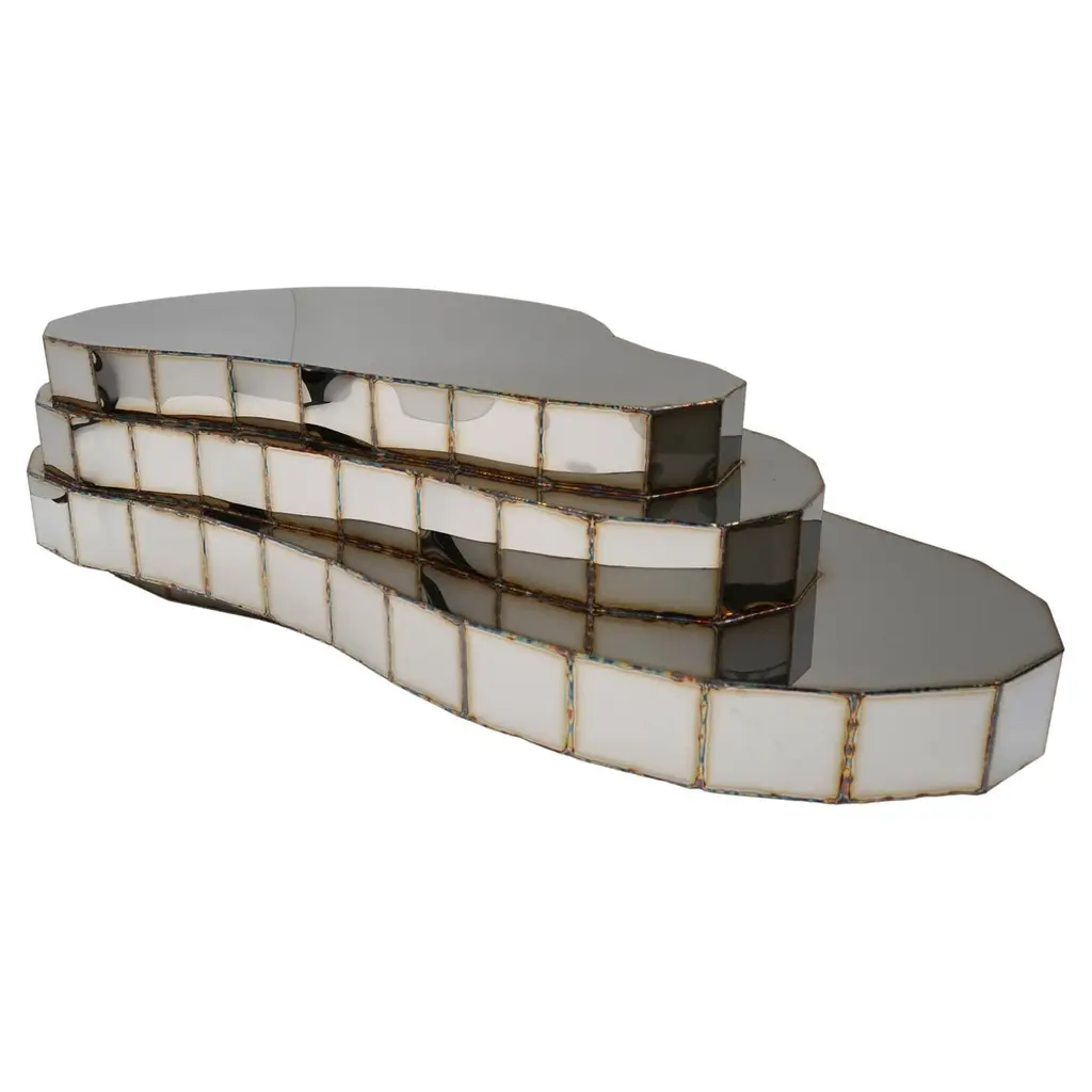 Artisan Mosaic Inlay Side Table - Matte Black Finish - Charcoal Gray