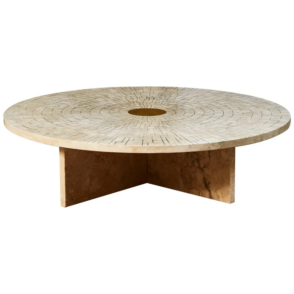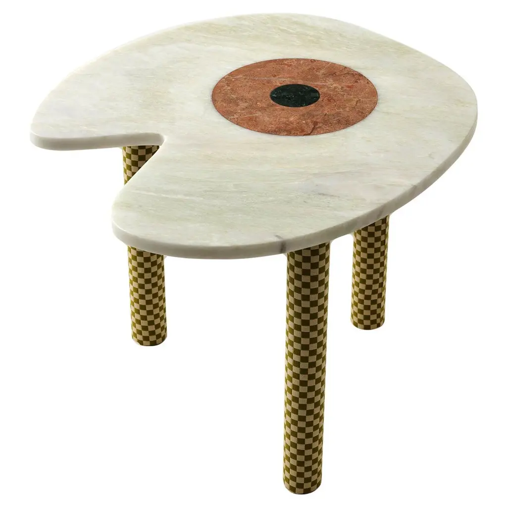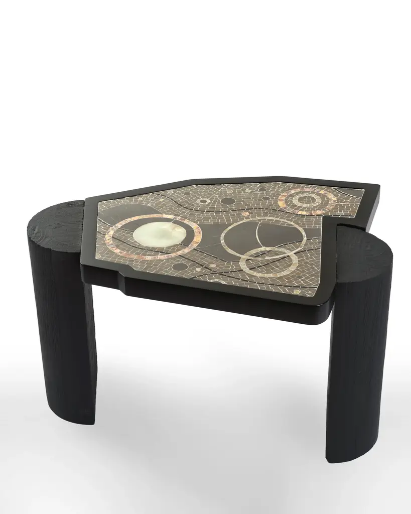 Artisan Mosaic Inlay Side Table - Matte Black Finish - Off-White