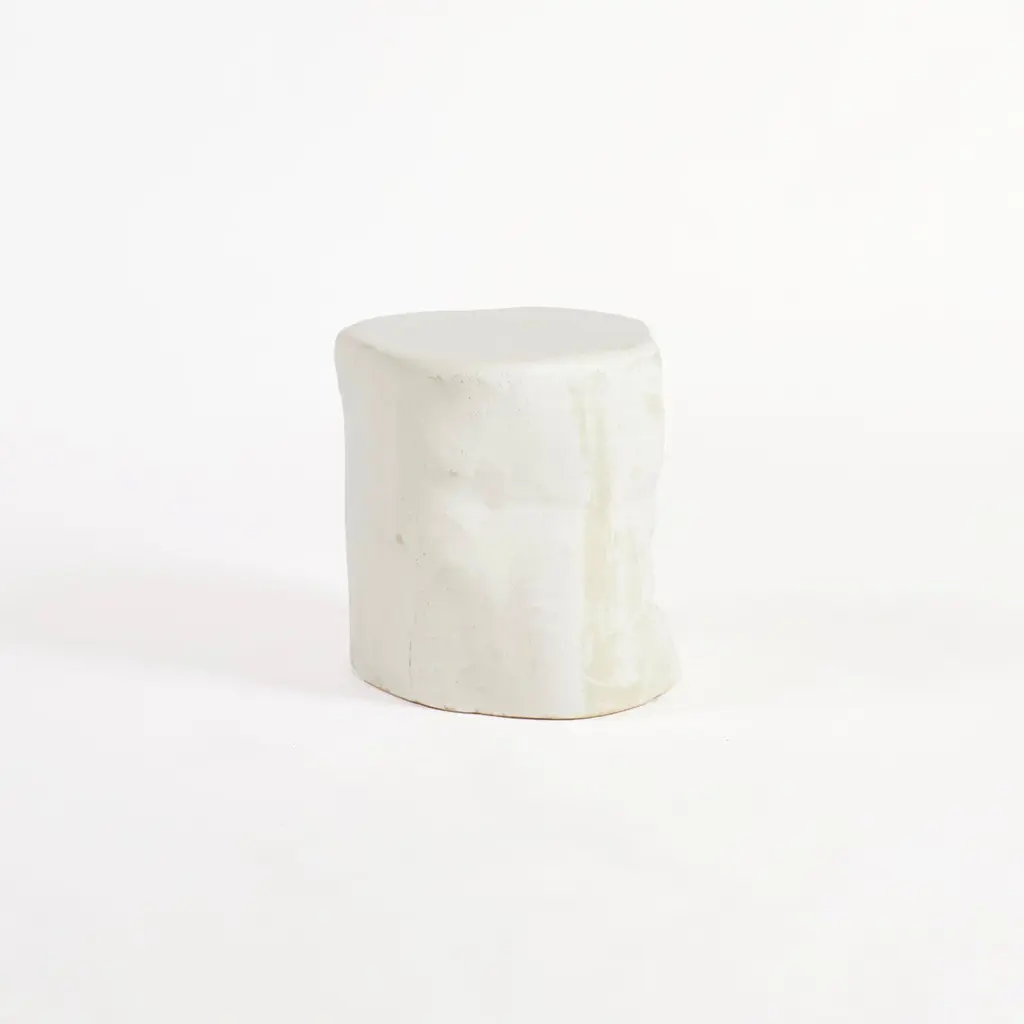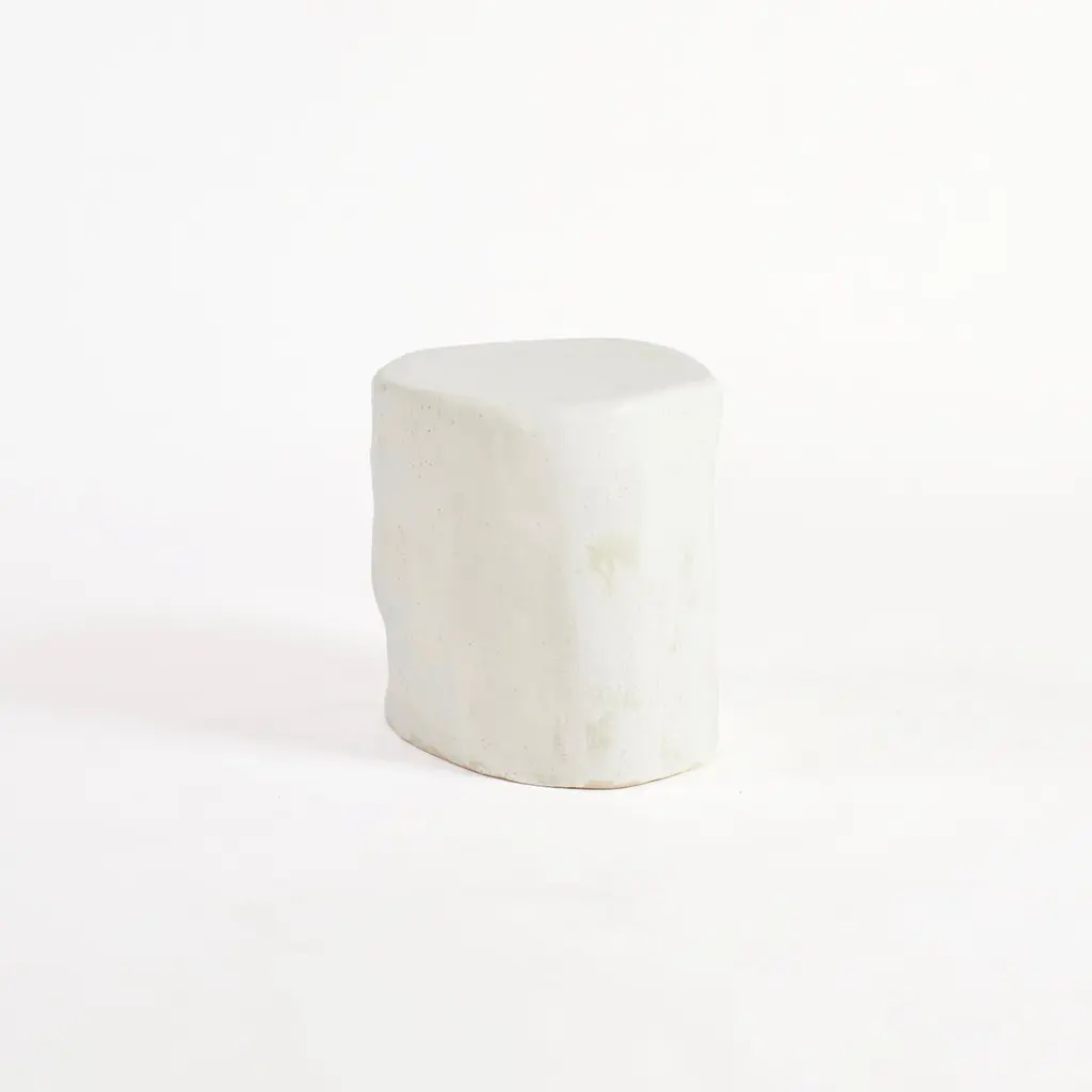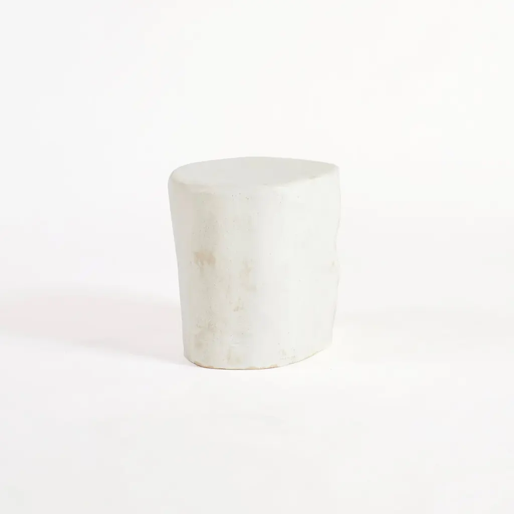 Artisanal Ceramic Side Table in translucent cream white by Project 213A.Crafted in the brand's in-house ceramic workshop.This table follows a general design pattern launched in 2023 but due to the hand-crafted and hand-glazed process creating this sculptural furniture item - each piece is unique in itself.Sizes and shapes might vary while the table is burnt and glazed.The soft cream colour appears translucent in parts revealing the colour of the base material.All materials including clay and glaze are locally sourced in Portugal, to help reduce CO2 Emission in the production process.Custom sizes and colours are available upon request.We have a large variety of colours available in the studio ranging from soft naturals to bold pop colours, please inquire and we are more than happy to help choosing the right glaze for you.