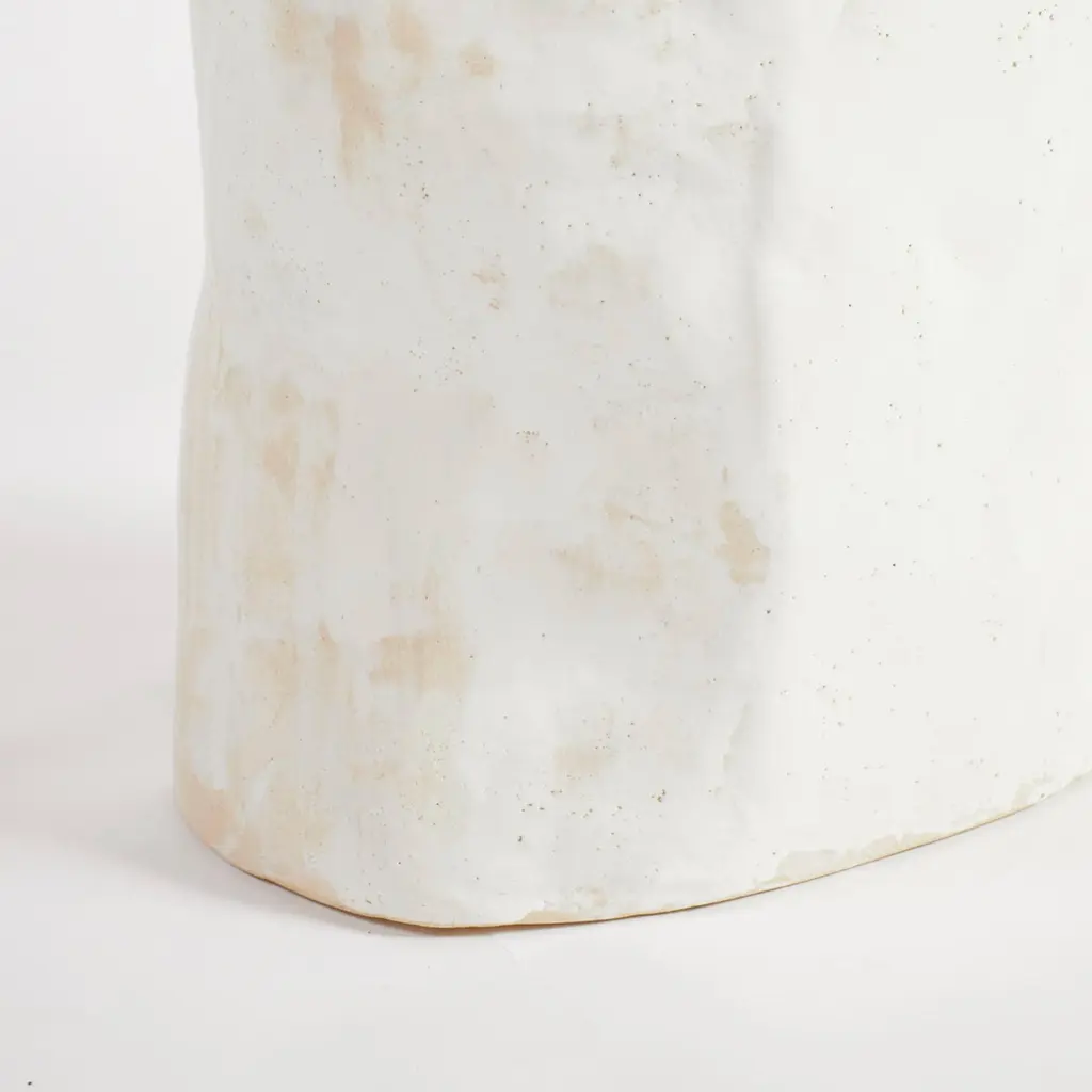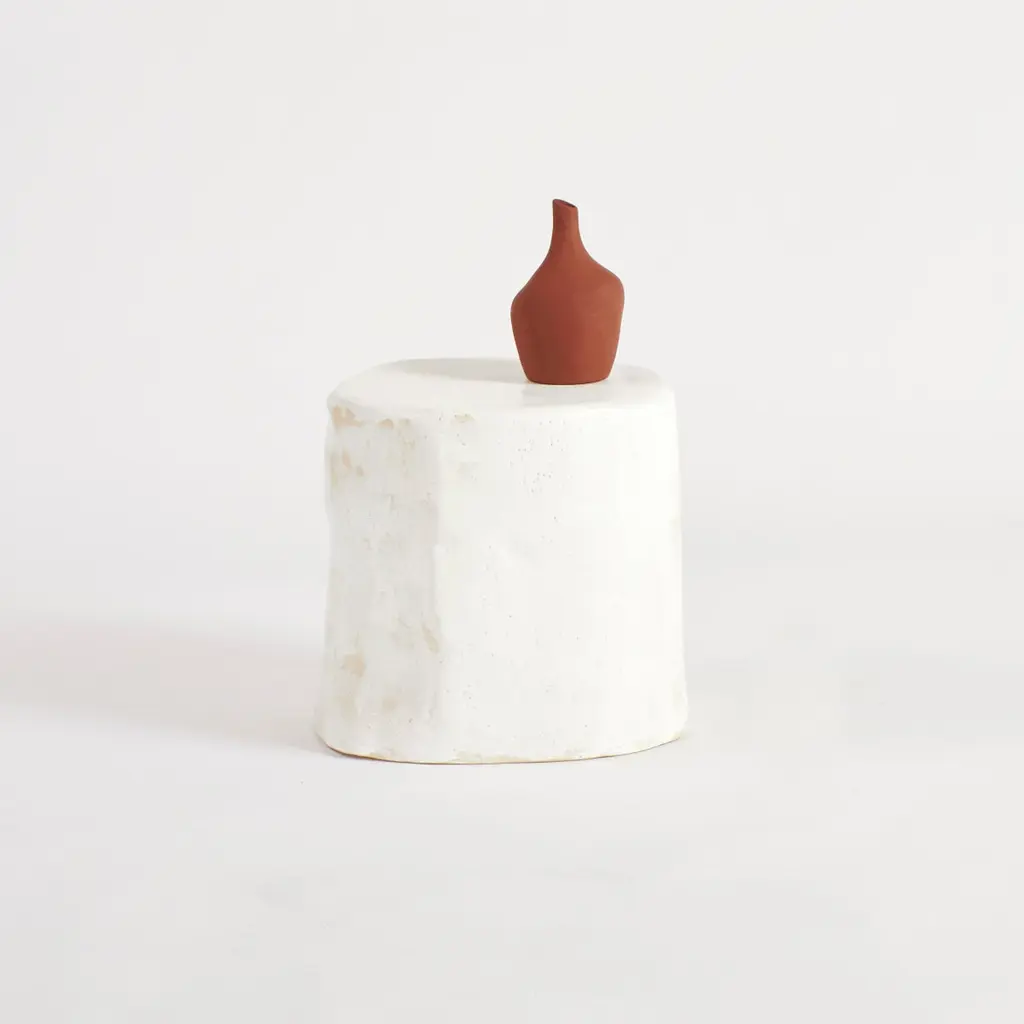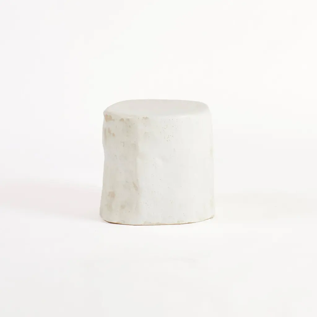 Artisanal Ceramic Side Table in translucent cream white by Project 213A.Crafted in the brand's in-house ceramic workshop.This table follows a general design pattern launched in 2023 but due to the hand-crafted and hand-glazed process creating this sculptural furniture item - each piece is unique in itself.Sizes and shapes might vary while the table is burnt and glazed.The soft cream colour appears translucent in parts revealing the colour of the base material.All materials including clay and glaze are locally sourced in Portugal, to help reduce CO2 Emission in the production process.Custom sizes and colours are available upon request.We have a large variety of colours available in the studio ranging from soft naturals to bold pop colours, please inquire and we are more than happy to help choosing the right glaze for you.