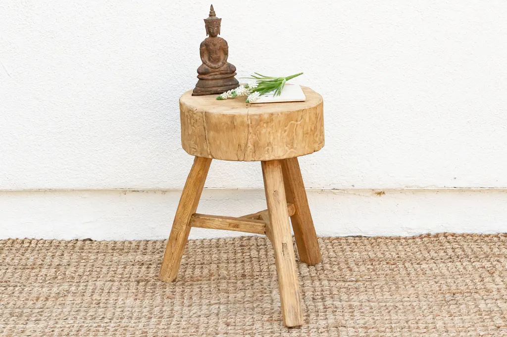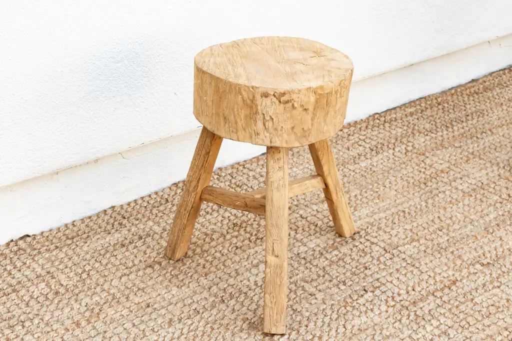 Embrace the natural beauty of this rustic end table, crafted from a salvaged tree stump with a rough, irregular top. Its earthy tones and weathered texture add a touch of rustic charm to any space. Perfect for a farmhouse, cabin, or eclectic living room, this petite table offers a unique and versatile piece of furniture. Its small size makes it ideal for a corner or side table, where it can display decorative objects or serve as a spot for drinks.