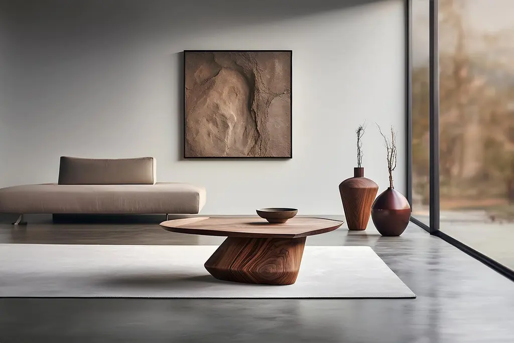 Sculptural Coffee Table Made of Solid Wood, Center Table Solace S32 by Joel EscalonaThe Solace table series, designed by Joel Escalona, is a furniture collection that exudes balance and presence, thanks to its sensuous, dense, and irregular shapes. These small tables double as works of art, bold and sculptural, with function taking a backseat to expression.Inspired by the iconic Pigeon sculpture by Isamu Noguchi, the Solace table series is a stunning tribute to the fusion of traditional and modern design elements that made Noguchi's work so unique. Drawing on the curves and lines that characterize his style, these side tables feature outlines that pay homage to the renowned American artist.Crafted from stunning walnut wood, the Solace side table series celebrates the rich, earthy hues and unique grain of this beautiful material. Each piece is produced one at a time in our workshop in Mexico by NONO Furniture, making it truly one-of-a-kind. Due to the nature of the production process, every piece may vary in grain, texture, and shape, adding to its unique character.These versatile side tables can also function as nightstands and are crafted with care and attention to detail by our skilled artisans. The individual variations in grain, texture, and shape ensure that each piece is a functional sculpture. Production takes 7-9 weeks to ensure the highest level of precision and quality.—NONO is a Mexican design brand with more than 10 years of experience dedicated to the production of interior furnishings, editions, and custom-made projects. At NONO, we create pieces of extraordinary beauty, accommodating the particular needs and tastes of each client with exclusive high-quality designs.————Some details to consider when placing an order with us:• Catalog images are digitally generated. Actual products may slightly vary in texture, grain, and final finish due to natural material differences. Despite these variations, our expertise ensures each piece maintains high quality and matches the intended design.• All of our products are made to order, and the lead time for standard products is estimated to be 9 to 12 weeks, plus shipping time. However, special pieces or sculptures may require a longer lead time.• We offer customization in dimensions and finish for all of our furniture pieces, which may result in additional charges.• We only facilitate freight services by a third party. The client is solely responsible for any associated import/export taxes, as well as any necessary customs paperwork.• We are not responsible for any damages that may occur during shipping or for any customs-related delays.