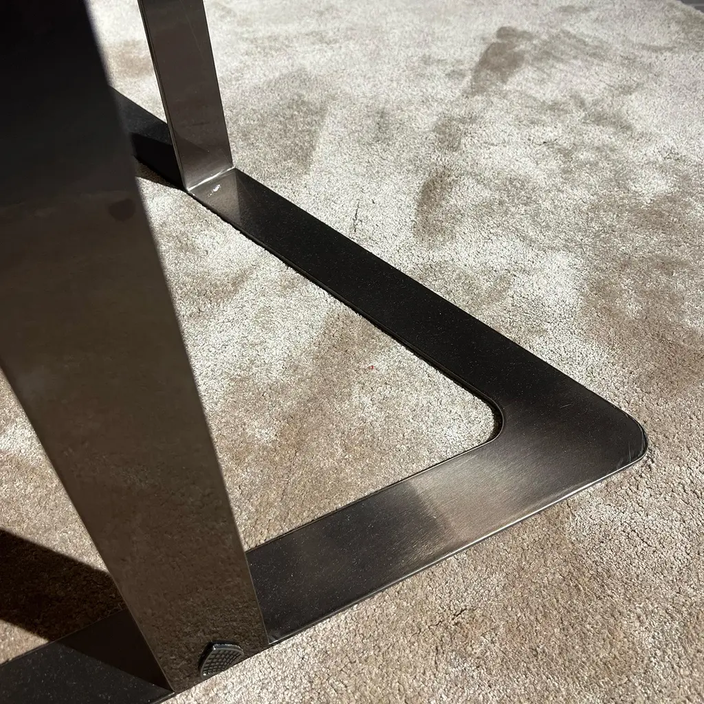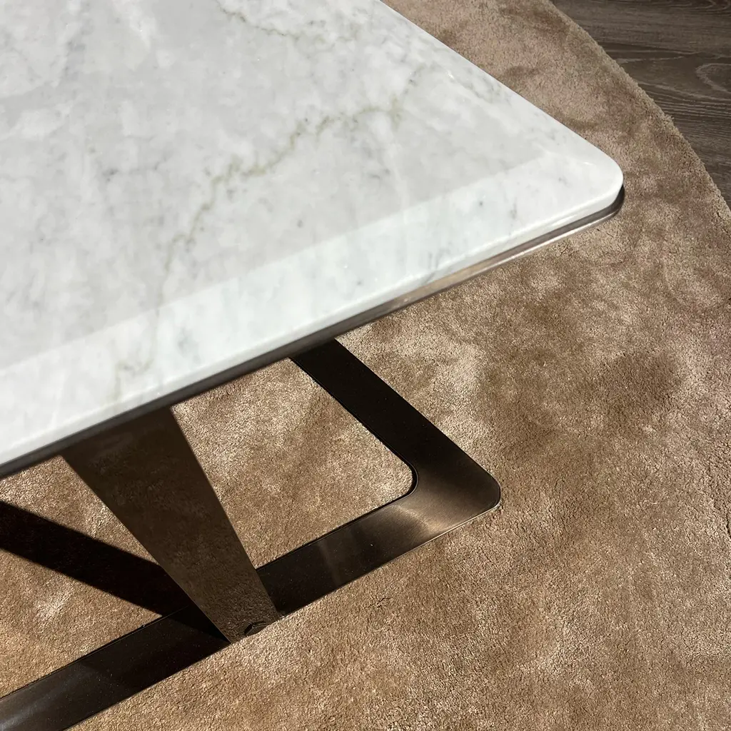 Industrial style made timeless with a superb marble top makes this singular side table a standout piece for a modern decor. Designed to add extra space to an otherwise too small surface while not renouncing luxury, it features a metal frame that is as airy as it is steady, topped by a prized white marble top flaunting exceptional, unrepeatable traceries.