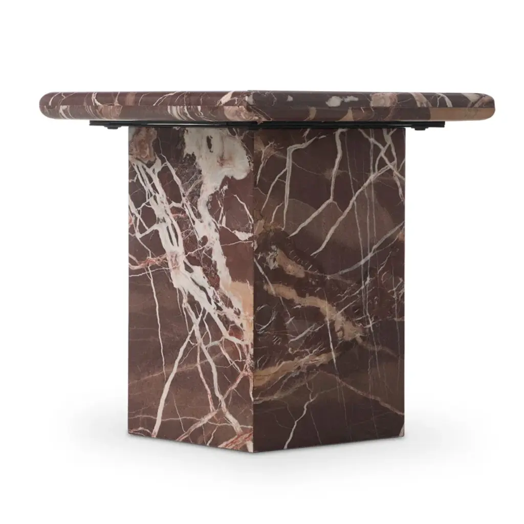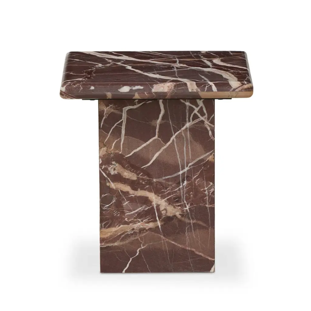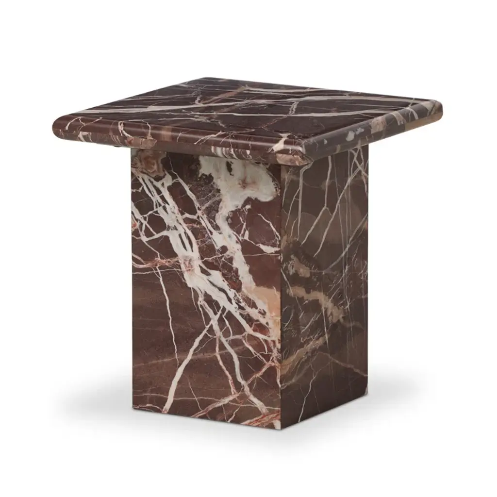 Keep your favorite drink or book within reach with a monolithic end table inspired by Italian design of the 1970s. Made entirely from solid marble in a unique wine hue.