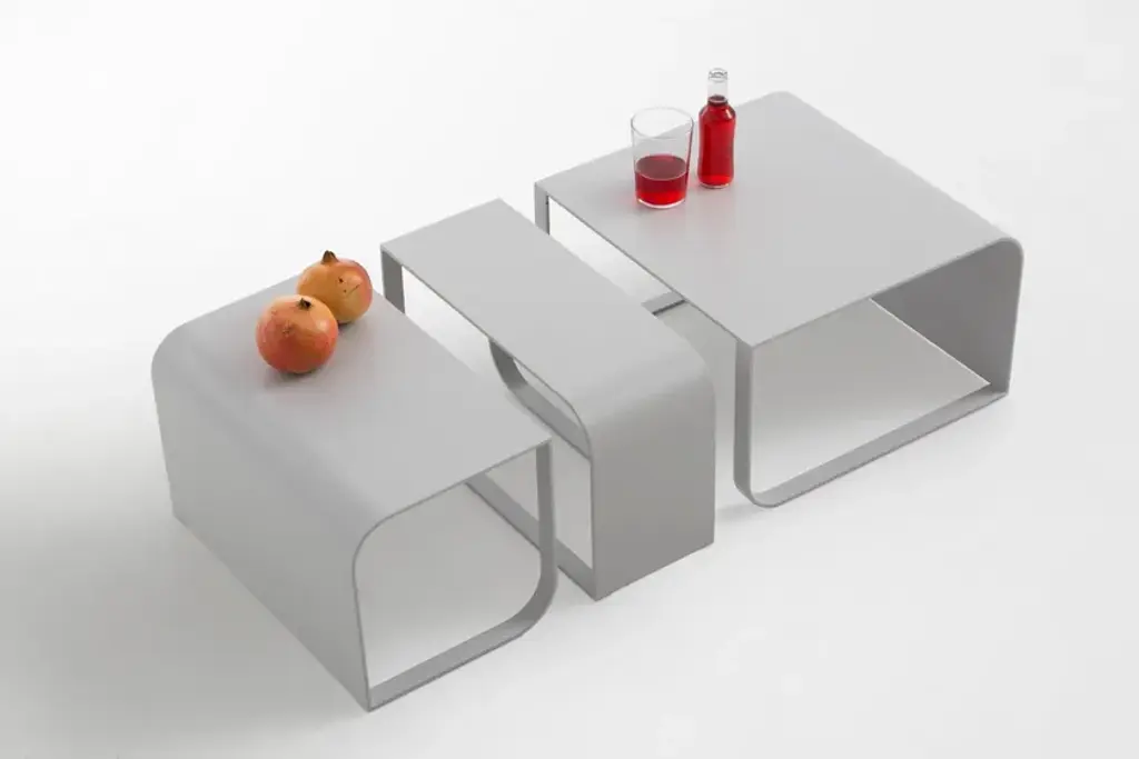 Don't be fooled by its simple appearance, the Arumi outdoor table is one of those designs we're fascinated by at Diabla because it's the result of such clever thinking. This serie includes three options in different sizes. It's not a question of offering you more sizes, but because when they're combined with each other you'll be able to get a variety of occasional table arrangements, depending on how you set them up. A piece whose final look is left entirely up to your creativity, or to the types of arrangement you need at any given time.Made of thermo-lacquered aluminium.Colours: white, pink, red, grey, anthracite, sand and bronze.
