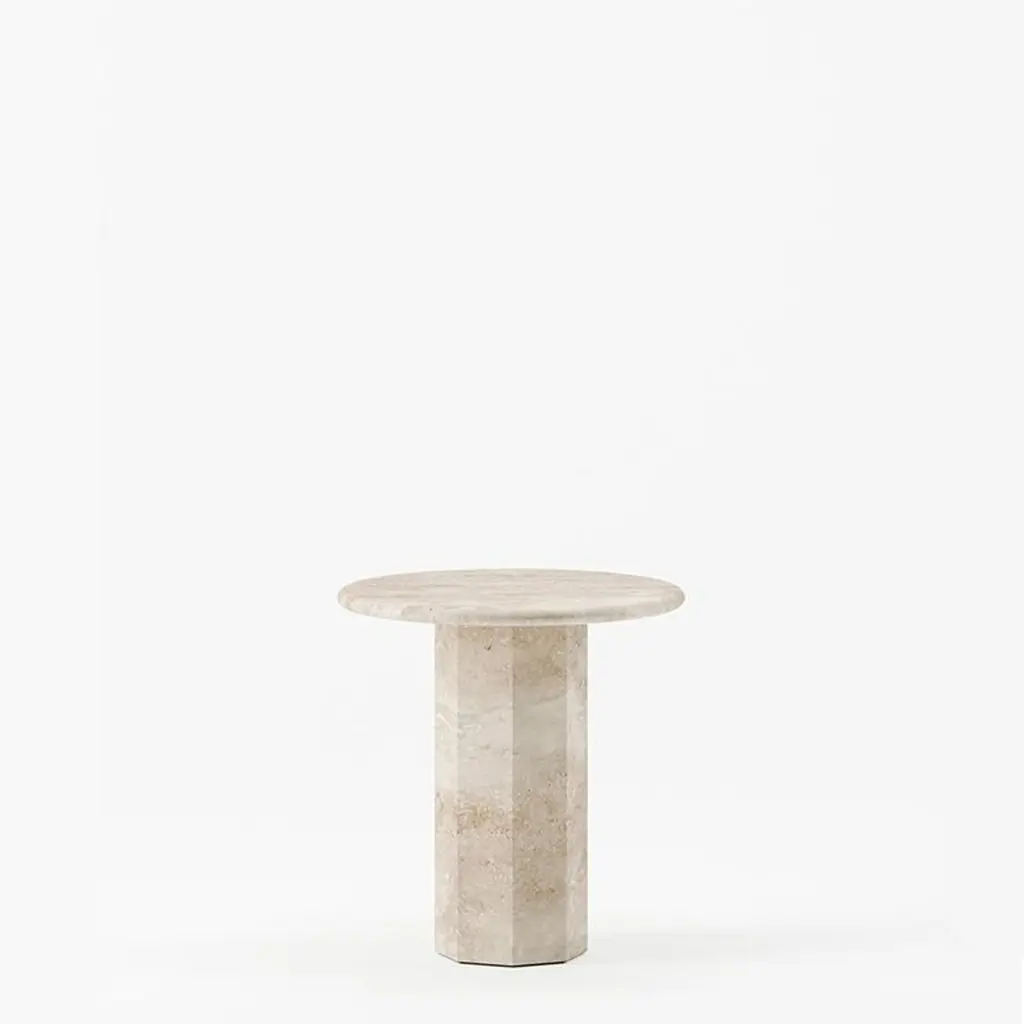 The Ashby side table is evidence of Lemon’s journey into increasing simplicity. Versatile in nature, the piece’s pure silhouette, elegant proportions and dramatic texture lend it to a variety of uses and spaces. With a design cued entirely by its material, its round slim top is countered by a strong faceted base – a definitive design detail.In all we do, we celebrate the beauty of the handmade - artisan-created pieces that foreground technical skill, and showcase the nature and quality of the materials we use. In our furniture making, the idea is to create special pieces that you can build a space around, whose designs highlight rather than overshadow the surface itself. As a result, simple lines that demonstrate craft is one of our core considerations.Designed by Lemon co-founder and head of design Kevin Frankental. Please note that travertine is a natural material - no two pieces are alike. We always hand-pick the best slabs to create the perfect piece.