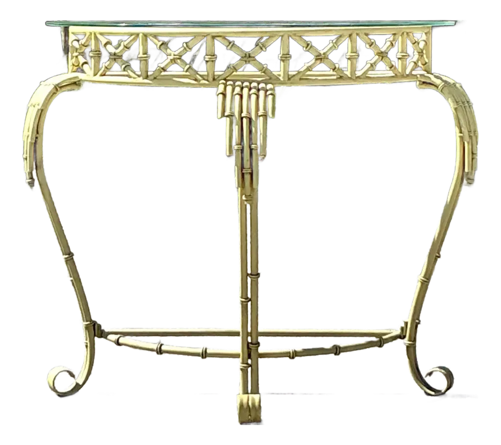 A Hollywood Regency-style classic, this bamboo-style gilded coffee table with a mirrored glass top makes a glamorous statement.
