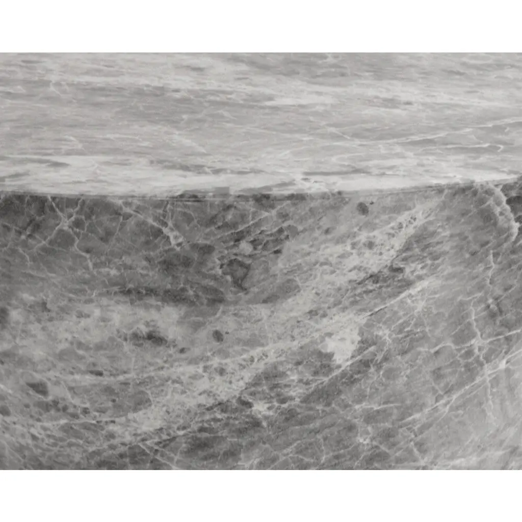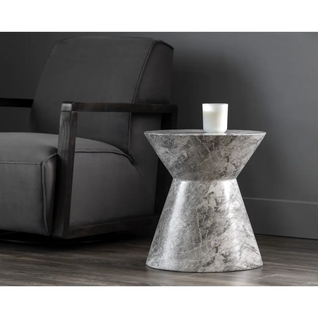 A tapered design on this round concrete end table creates a bold but defined look. Made with a grey marble look finish.