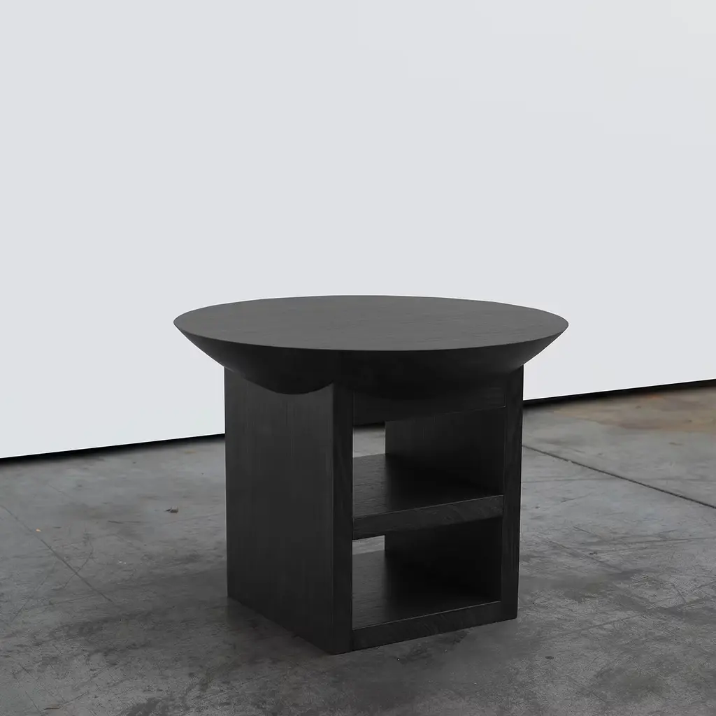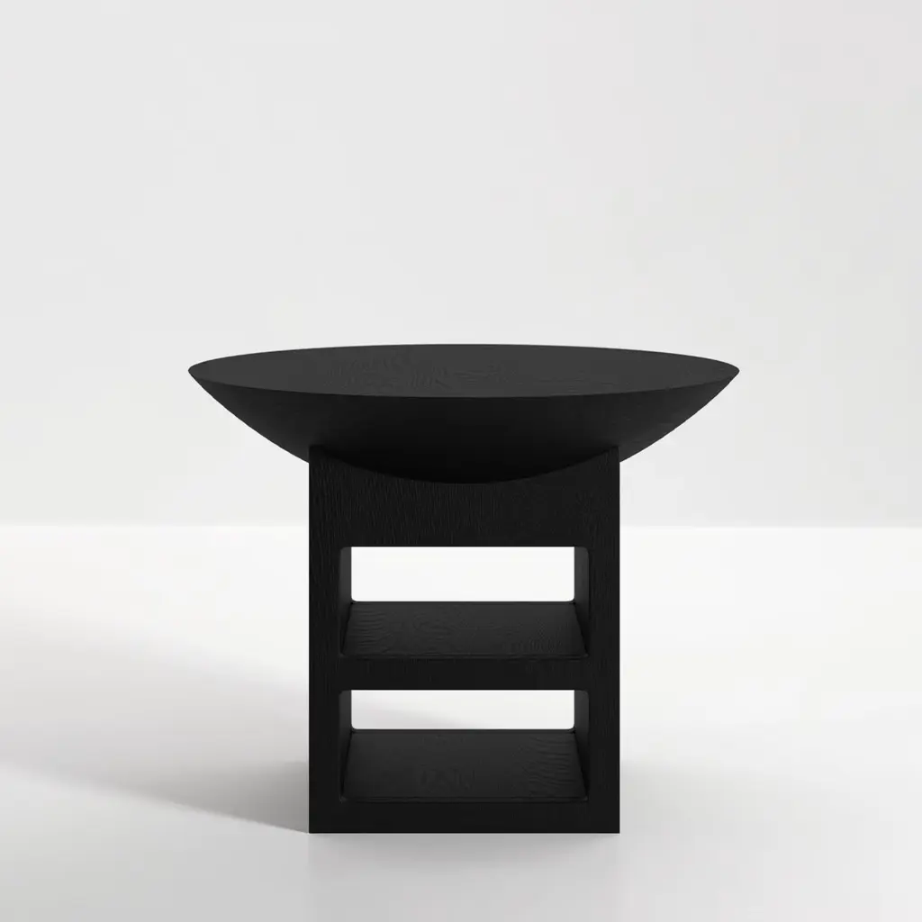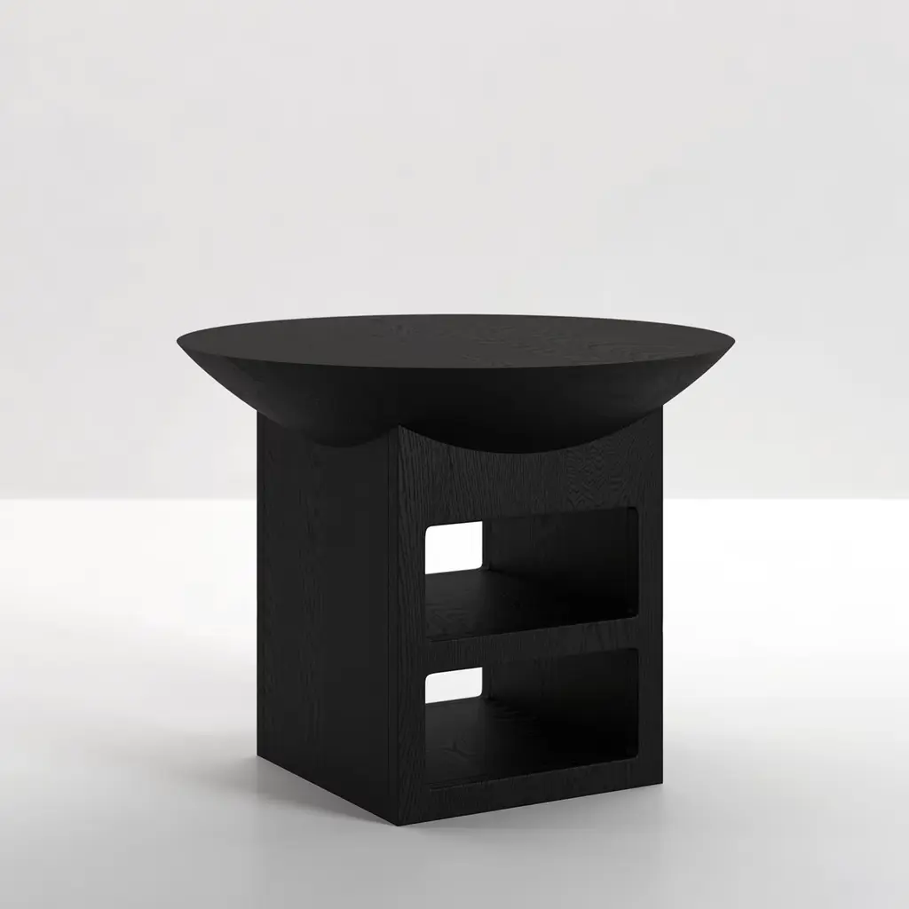 The Atlante Side Table by Artefatto Design Studio is a versatile piece, functioning as both a coffee table and a bedside table. It features a cut sphere that forms a large circular top, elegantly supported by a square-section base. The side table is presented in Dark Stained Walnut wood, showcasing its finish. Also available with a solid base and various wood options, Atlante combines style and functionality seamlessly.