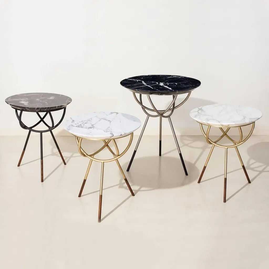 Atlas Side Table: Satin Nickel With Black Marble Top By Avram Rusu Studio