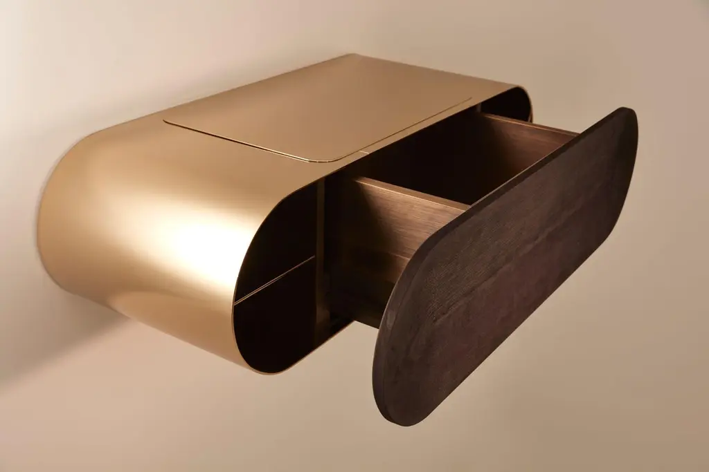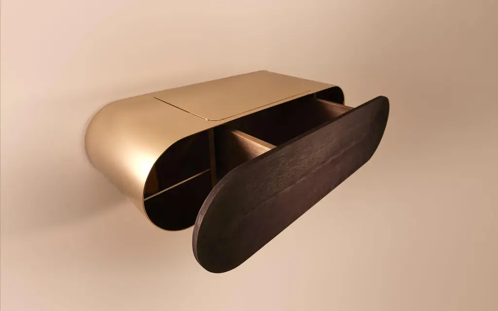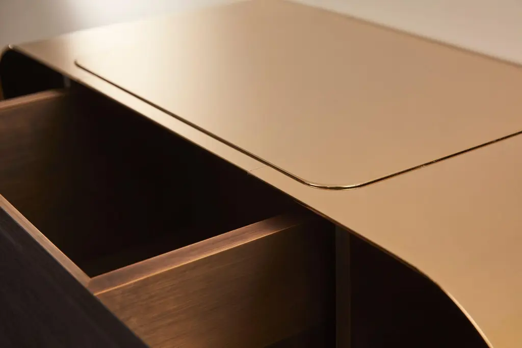 Nova side table by MydriazDimensions: l 78 x d 31 x h 23 cmMaterials: Brass, WoodFinishes: Golden-plated or varnished brushed brass, White nickel finish on brushed brass, Black nickel finish on brushed brass25 kgOur products are handmade in our workshop. Dimensions and finishes may vary slightly from one model to another dimensions can be customized certain changes in finishes and/or dimensions may result in additional costs.Founded in 2011, Mydriaz is a creation studio specializing in the tailor-made production of decorative lighting, monumental installations and brass furniture.At the head of Mydriaz, Jennifer Midoz and Malo du Bouëtiez offer refined sets combining brass with other noble materials. From the first sketch to the installation, the creators participate in all stages of the production.Elegance, balance and harmony are at the heart of their aesthetic concerns.Working at the convergence of artistic and Craft disciplines, their work around lighting and furniture combines traditional manufacturing methods with contemporary techniques. Between requirement and avant-garde research, Mydriaz places sensitivity, finesse and lightness at the heart of its philosophy.
