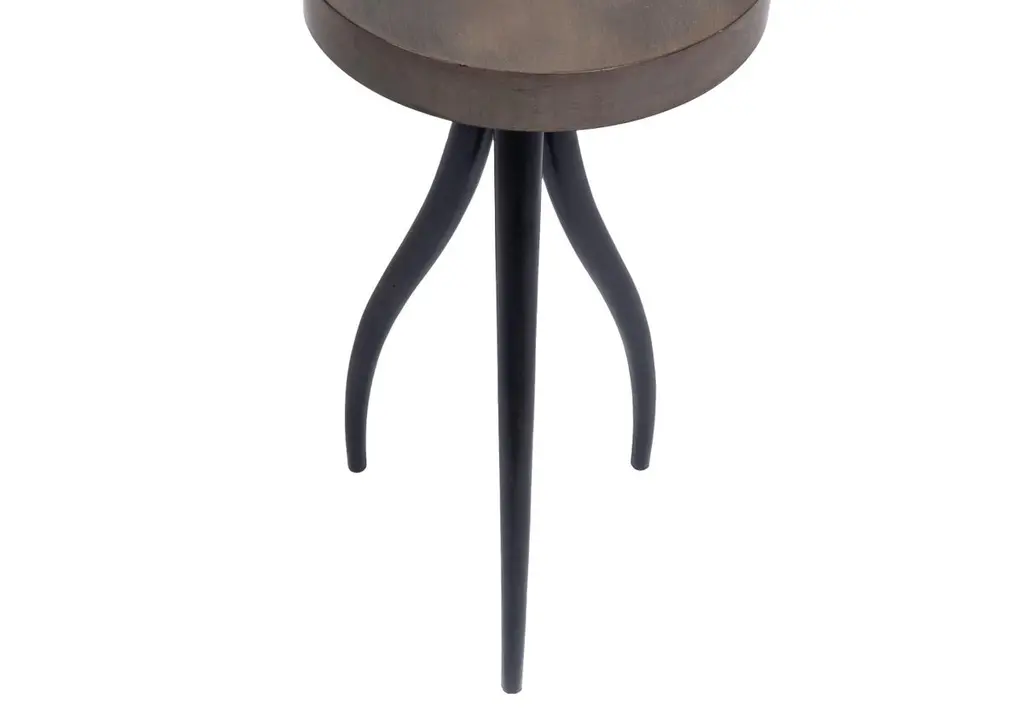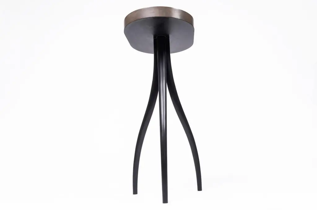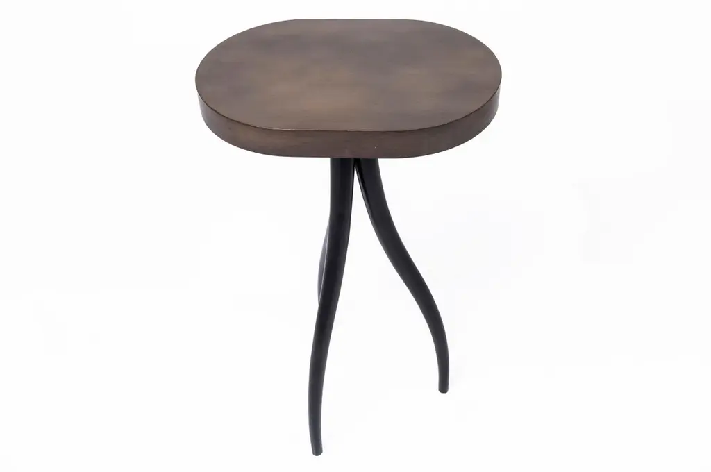 Designed by Ashley Yeates, 'The Modern Hepburn,' handcrafted in California using FSC-certified wood and non-toxic finishes. COM/COLThe Audrey Side Table by Ashley Yeates is thoughtfully designed to complement the Hepburn Settee, serving as a sleek and functional drink table perfect for small spaces. With its refined aesthetic and purposeful design, it adds elegance and utility to any room. The Ashley Yeates Collection stands out as one of the few bespoke furniture lines committed to sustainability, using eco-conscious principles and responsibly sourced materials. Each piece reflects a dedication to craftsmanship, beauty, and environmental responsibility. The Audrey Side Table embodies this philosophy—where timeless design meets mindful living, offering a stylish solution for compact living areas without compromise.Dimensions: 10"W x 24"H x 14"LMaterial: Wood: Alder finish: Onyx base, Antique brass metal top.“Custom options available; please inquire for details.”"Price as shown"