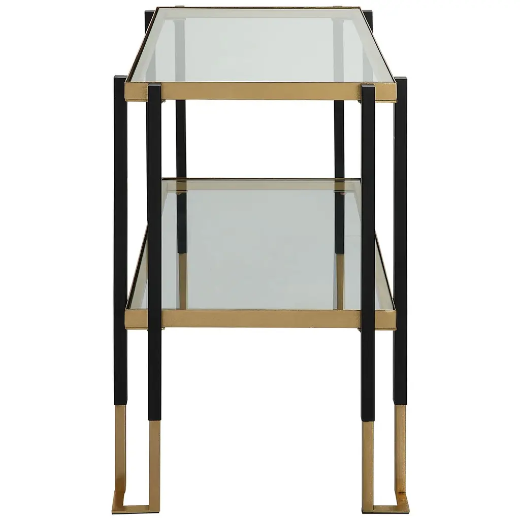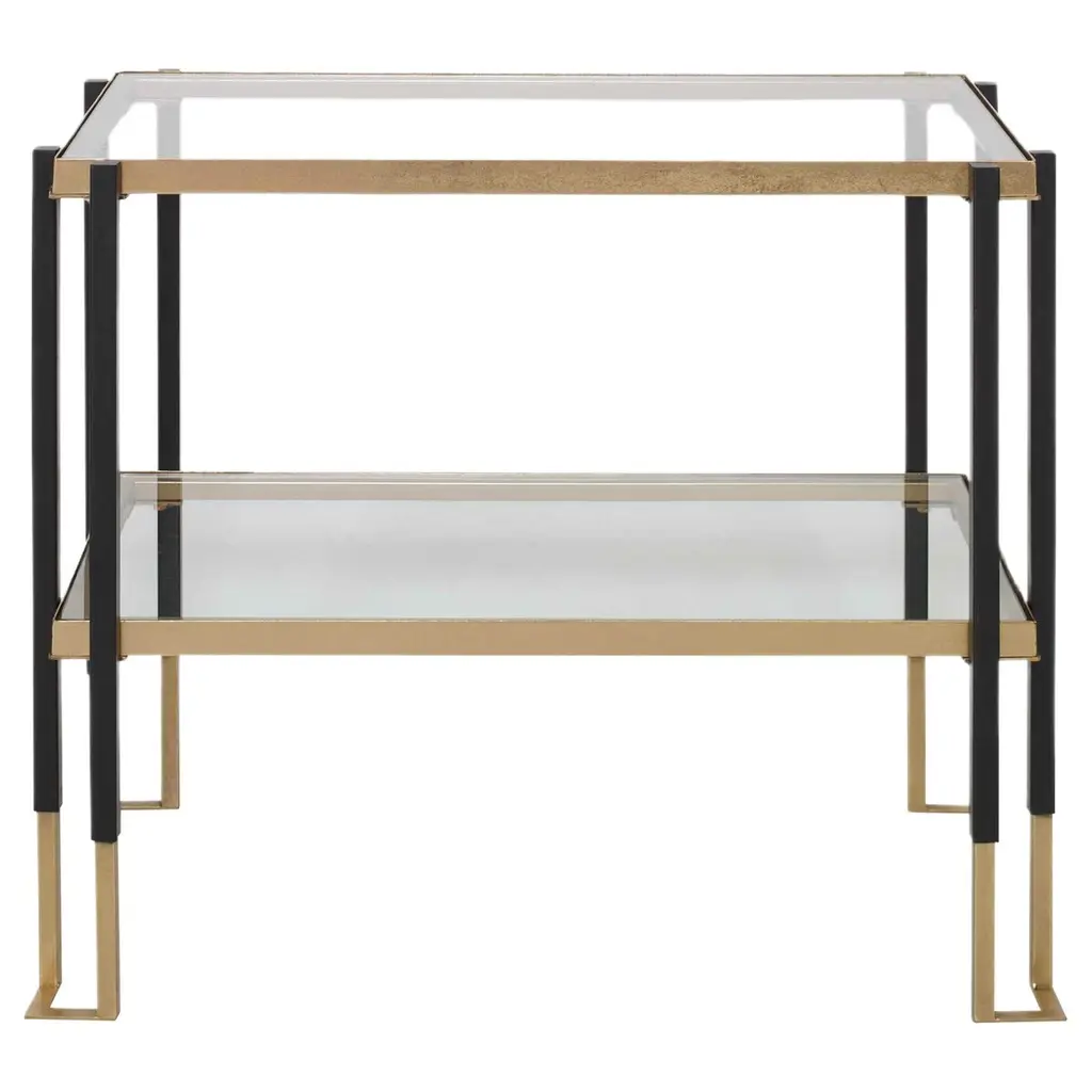 The August Side Table is a masterpiece of contemporary design, where elegance meets functionality. Its clean-lined solid iron frame exudes a sense of strength and sophistication, while the harmonious blend of matte black and gold leaf finishes adds a touch of opulence. This exquisite table is not just a piece of furniture; it's a statement of style, featuring two tempered glass shelves that offer both practicality and a glimpse of modern artistry. Let the August Side Table be the centerpiece of your living space, where its timeless beauty and refined craftsmanship create an atmosphere of romance and allure.