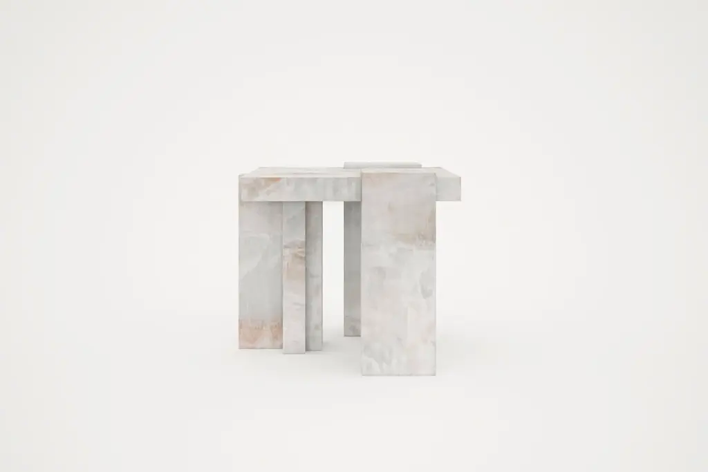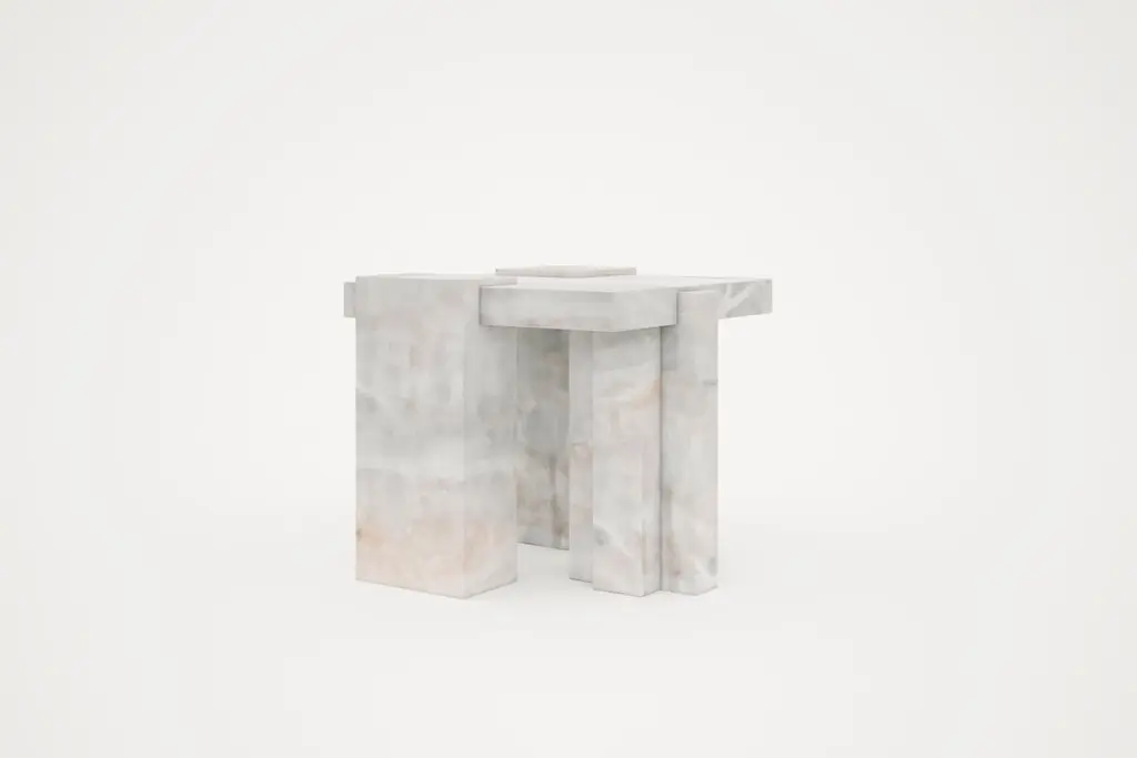 Auguste Piece 02 White Onyx Limited Edition Side Table by Tristan Montabord-MarcLimited Edition Of 12 PiecesDimensions: D 50 x W 50 x H 43 cm. Materials: Onyx.Also available in Zericote wood and bronze. Prices may vary. Please contact us.Auguste is a furniture collection designed with the ambition of highlighting the beauty of raw materials and the simplicity of form.Each piece explores a balance between massive volumes and subtle details, revealing the craftsmanship of artisans whose every gesture brings life and character to the material.The collection includes six distinct creations, each marked by asymmetrical shapes and contrasting surfaces.Auguste offers an approach to furniture where each element is crafted to endure, embodying a vision of lasting aesthetics.Through this collection, the studio examines the relationship betweenmaterial and space, inviting a rediscovery of the essential, of the passage of time, and of the moments that sometimes slip away.Tristan Montabord-Marc was born and raised in France. After spending several years working in residential project development, he founded his own design studio in 2021.From a young age, he has been attentive to every detail of his surroundings. He is sensitive to structures, observes the richness of volumes, the unique qualities of materials, and perceives the properties of light on surfaces.Tristan Montabord-Marc is intuitive and perceptive. He is convinced that there is a way to make the world, in some sense, more beautiful. His desire and need to be surrounded by beautiful spaces that significantly influence daily life experience drive him to continuously refine his perspective and conceptual language.The pursuit of timeless minimalism and discreet luxury is at the very core of his work. He designs interiors where architecture and design pay special attention to detail, enhanced by craftsmanship. Drawing from his creative reflections, he decided to launch his first limited edition furniture collection, named "Auguste". This collection opens a dialogue with his personal imagination, resulting in work that is both aesthetic and narrative.