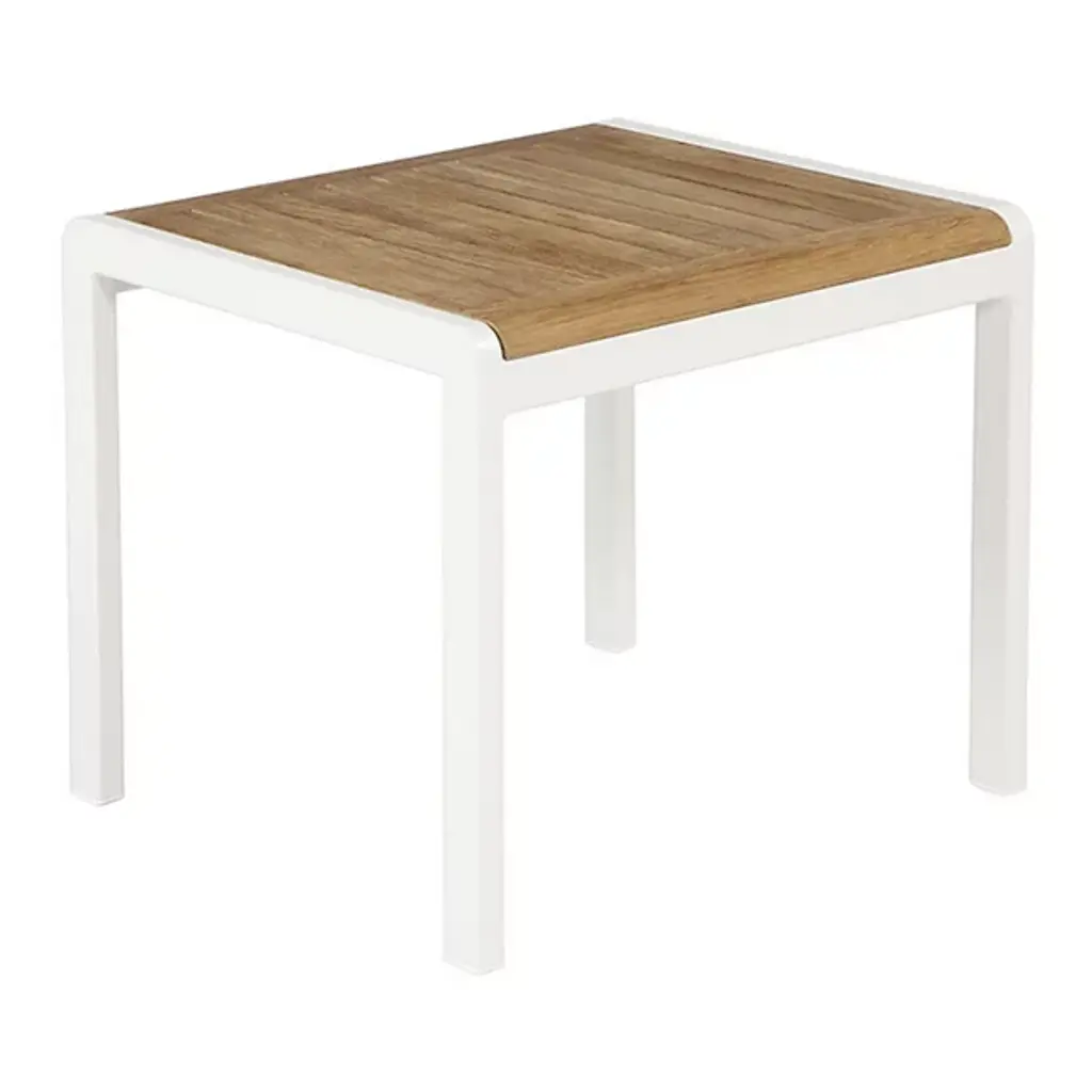 The Aura Outdoor Side Table with Teak Top from Barlow Tyrie is an elegant addition to your outdoor, patio, or terrace spaces. Expertly crafted with materials like powder coated aluminum and teak, it combines natural beauty with durability. Its transitional style seamlessly fits various outdoor settings, adding both function and style. Designed for outdoor use, this versatile piece blends effortlessly with your existing patio furniture for a cohesive look that enhances your outdoor entertaining.