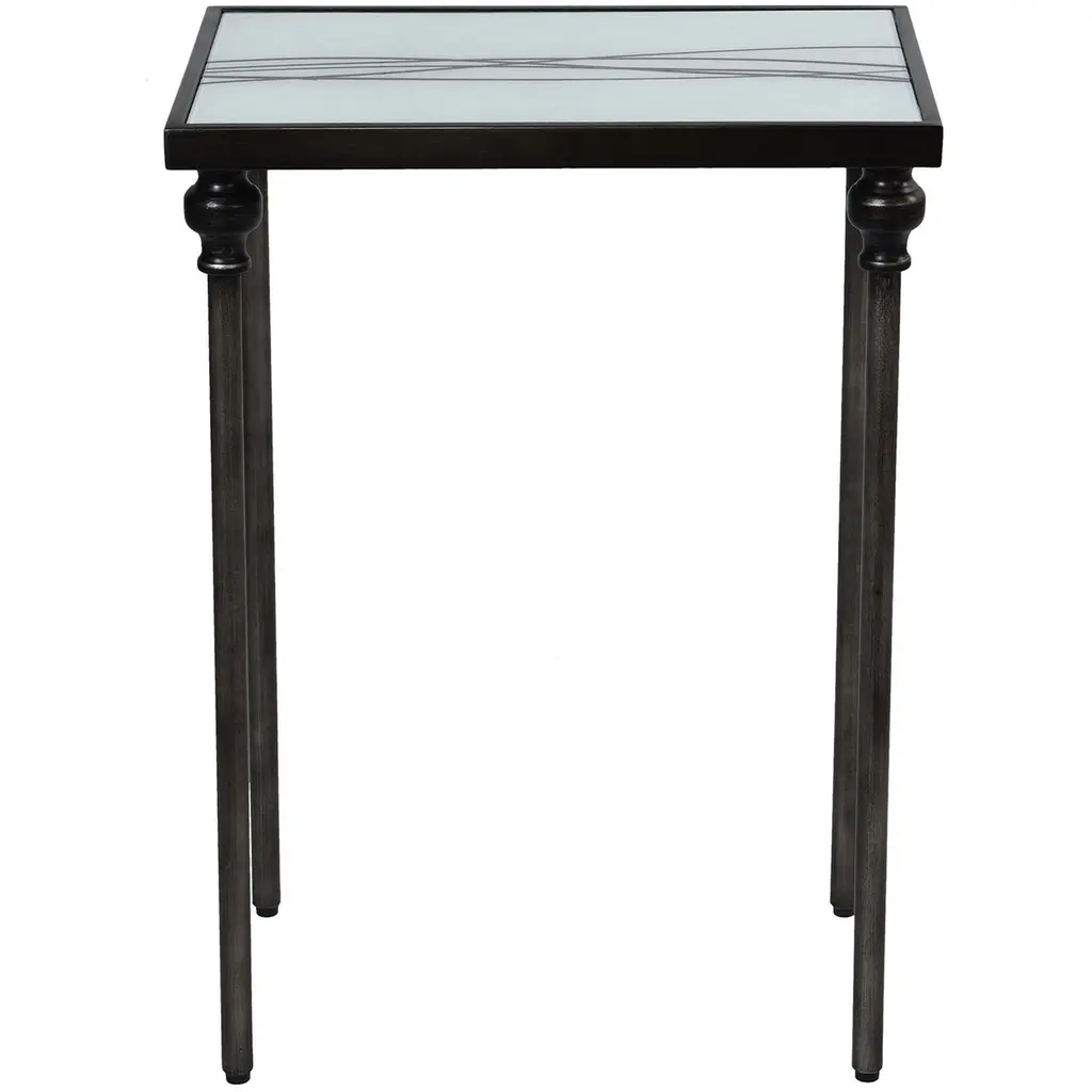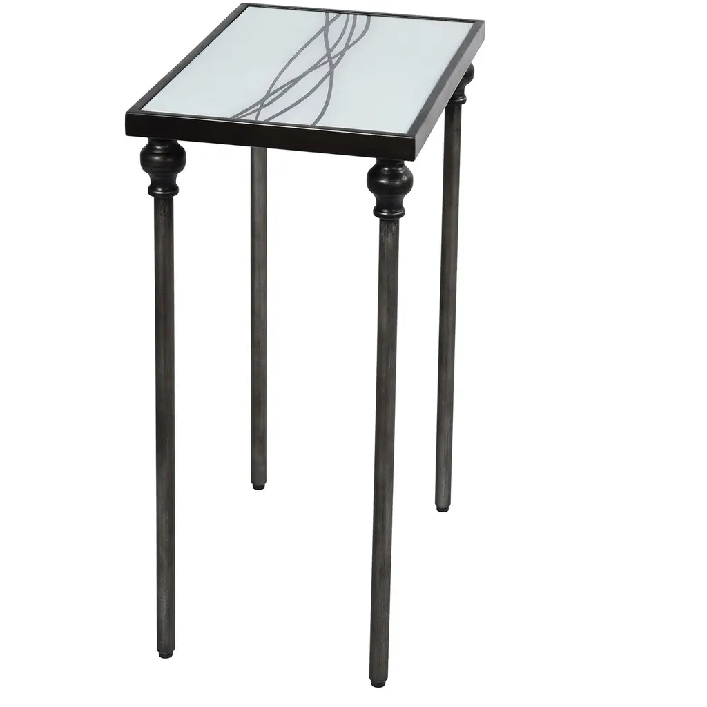 An elegant addition to your home, this Austin Allen James side table showcases the artistic flair of its namesake artist. The glass-top design, combined with a sturdy metal and iron frame, makes this side table a striking choice for your living room or dining room. Its unique combination of materials contribute to a contemporary aesthetic that can elevate the look of any space.