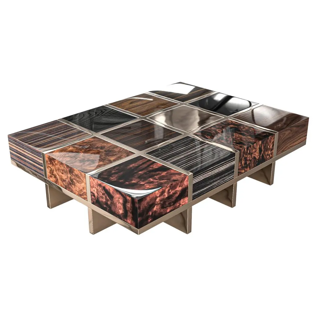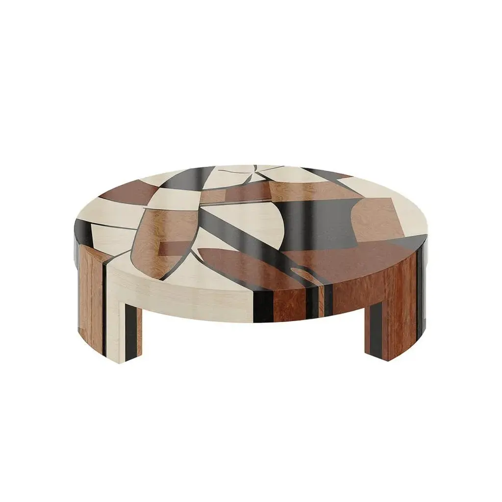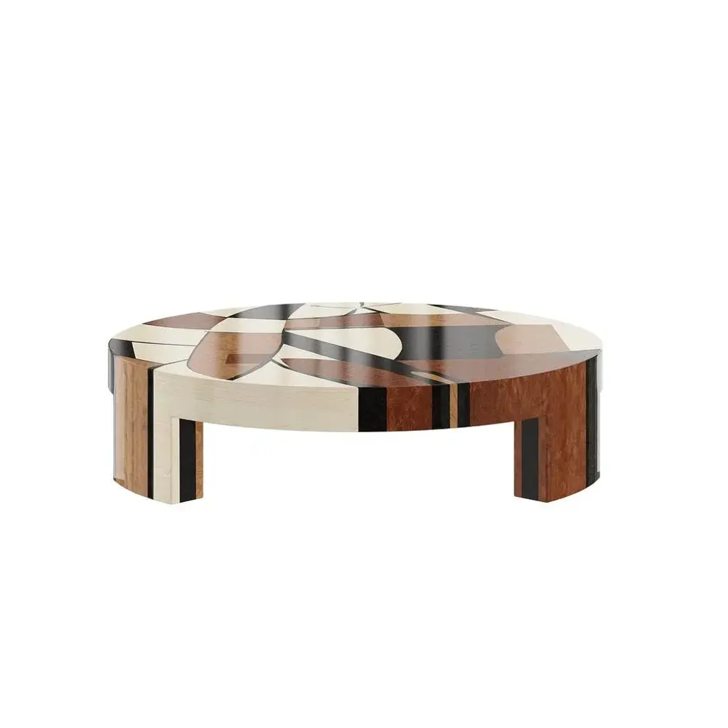 Austria Center Table is a stylish assembly of different types of wood. with a sincere texture, the marquetry coffee table is the pièce de résistance of a nature-inspired interior. Style this remarkable accent table with Austria Side Table for double delightfulness. MATERIALS:Body in Marquetry Gloss White Toulipier; Black Bird Eye; Ash Root; Cherry Root