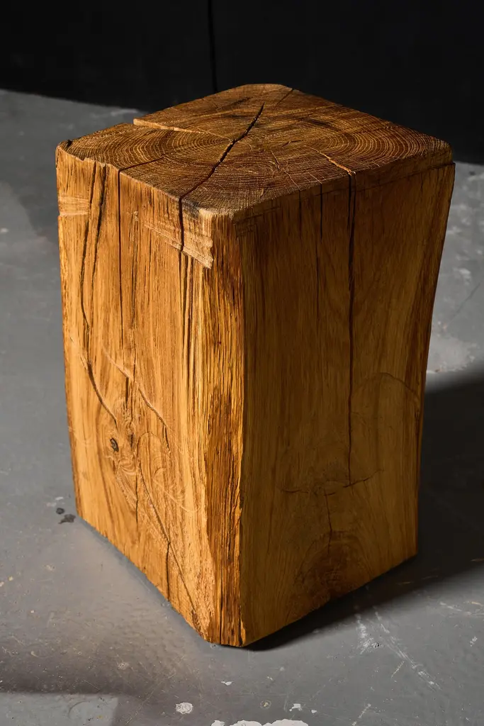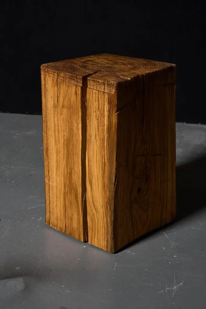 Authentic Vintage Brutalist Style Sculpted Side Table in Solid Oak – Ideal for Modern InteriorsDiscover the perfect blend of modern elegance and raw artistry with our Authentic Vintage Brutalist Style Sculpted Side Table in Solid Oak. This exceptional piece of furniture is designed to stand out in contemporary interiors, offering both style and functionality with a touch of vintage charm.Crafted from premium solid oak, this side table features a striking Brutalist design with sculpted geometric forms that highlight the natural grain and texture of the wood. The unrefined finish celebrates the inherent beauty of natural materials, ensuring each table is a one-of-a-kind statement piece with a vintage twist.At VulpeConcept, our skilled artisans meticulously handcraft each table, guaranteeing top-tier craftsmanship and attention to detail. The result is a side table that embodies both modern sophistication and Brutalist allure, making it perfect for enhancing the look of your living room, bedroom, or office.This sculpted solid oak side table is ideal for those who appreciate contemporary furniture with a distinctive character. Its minimalist design, bold aesthetic, and subtle vintage appeal effortlessly complement a variety of interior styles, while its robust construction ensures lasting durability.Elevate your interior design with our Authentic Vintage Brutalist Style Sculpted Side Table—a perfect fusion of artistic craftsmanship, modern utility, and vintage elegance. Experience the uniqueness of solid oak furniture that leaves a lasting impression.Disclaimer: As the product is made from natural wood, it may slightly differ from the photos due to variations in wood texture and shape.