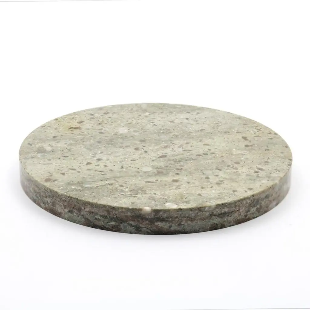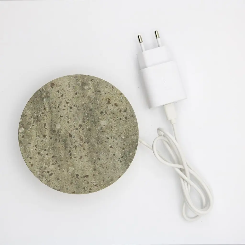 A corian base,that quickly charges your phone, with a touch of magic. A circle, a corian, realized with the care that marble requires.A powerful wireless charging technology ensures an efficient and reliable power delivery.The result is a magical object, with a natural feeling,a piece of art that wonderfully fits on any table or bedside table,or everywhere you imagine.A moment during the year that allows space for change, when falling means rebirth, when green transforms into something else, this colorcaptures the fluidity of a moment.Designed and manufactured in Italy, 100% Italian marble, 0% plastics.- 15W power supply included in the box.- Measures: Integrated cable: 90cm (3ft)- Base diameter Ø 12cm (4.72in) Compatible with all Qi-enabled devices.