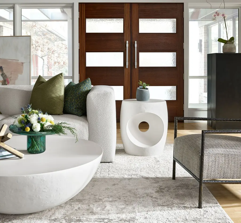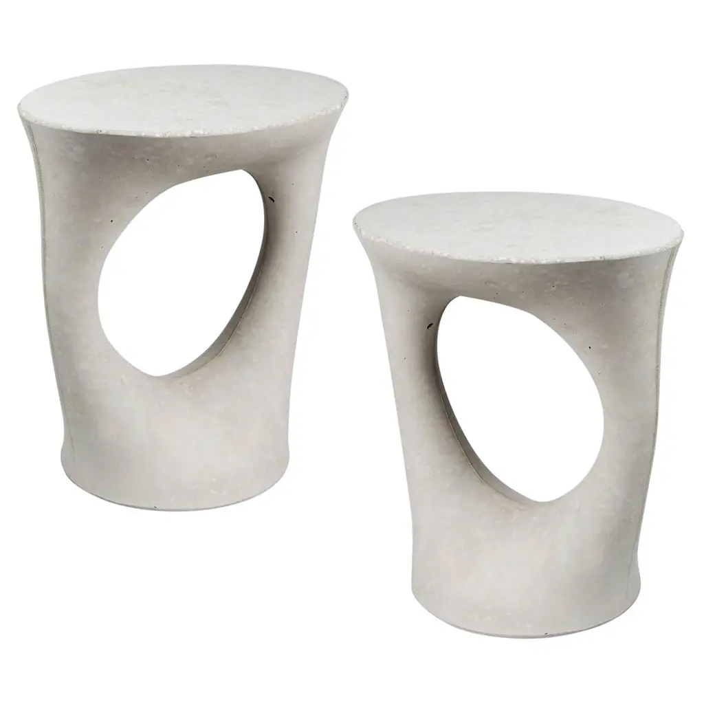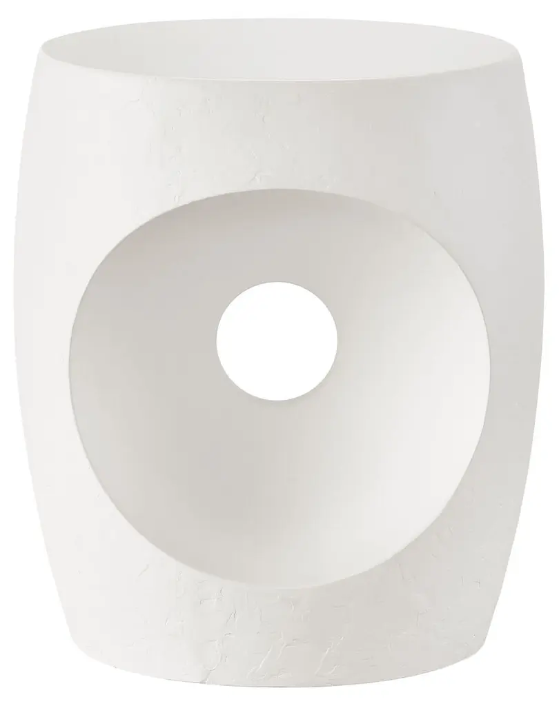 Standing two feet high, this accent table is as much a sculpture as it is a handy surface for drinks, snacks, or decorative objects. The plasterlike finish accentuates the artisanal shape.
