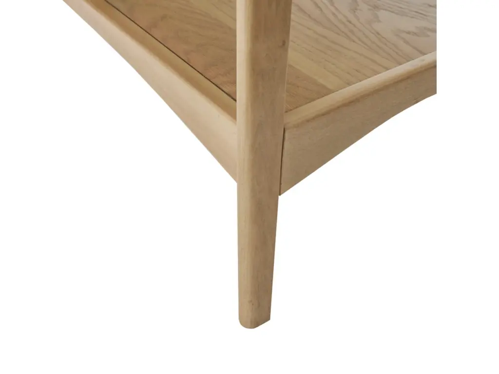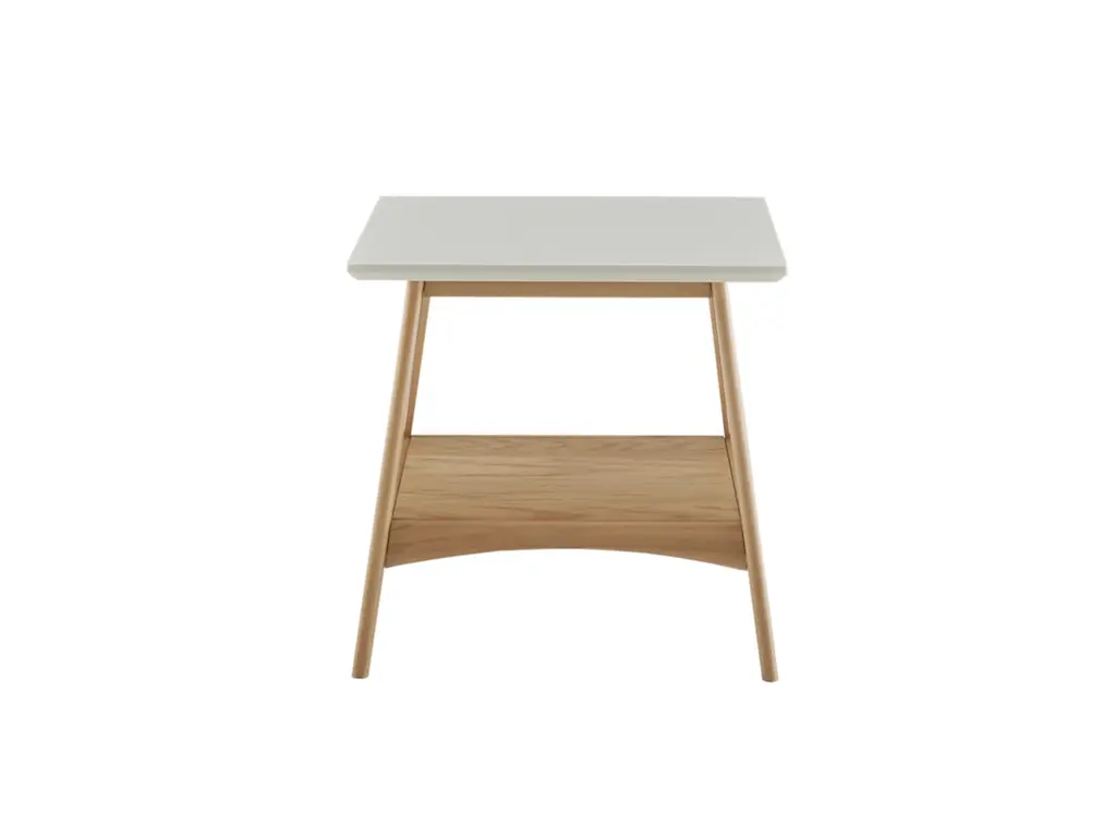With its tapered frame and two-tone finish, this end table brings mid-century modern charm to your home. Its sturdy solid wood construction features a natural finish that is contrasted with a clean off-white tabletop. Complete with an open lower shelf, this table makes a fresh, bold statement in any room.
