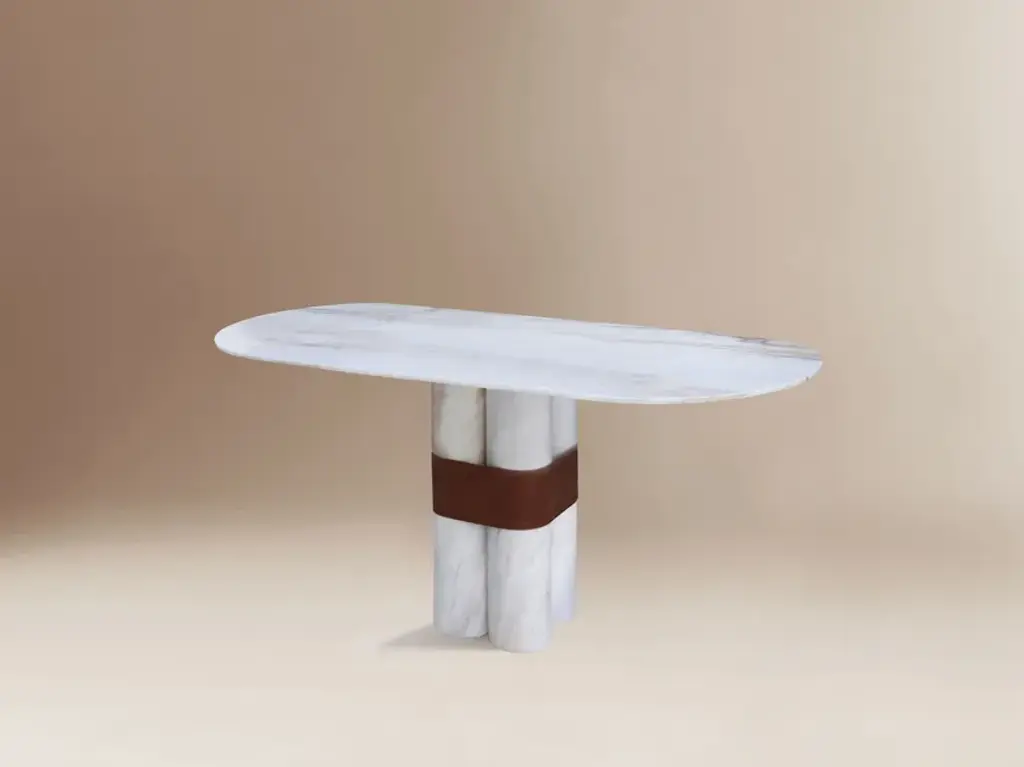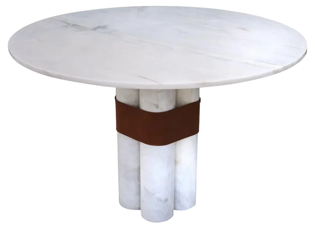 Axis Side Table by Dovain StudioDimensions: H 60 x Ø 60 cmMaterials: Estremoz White Marble, Eco leatherDovain StudioCreative direction by Sergio Prieto, a Spanish artist-designer who was born in Talavera de la Reina in 1994. He dedicated himself to the world of painting professionally since he was 10 years old, and at 18 he began to study design. He has been working in different countries around the world, like China, Índia, France, Italy, Spain and Portugal, collecting experiences and knowledge that shaped his artistic vision from an early age. Now, he lives and works in Lisbon.One of his work’s priorities is the search for the expressive language of objects, creating emotions in those who see and feel his pieces. His artistic vision is printed on each piece of Dovain Studio bringing art, decoration and design, all together within the context of contemporary design culture.