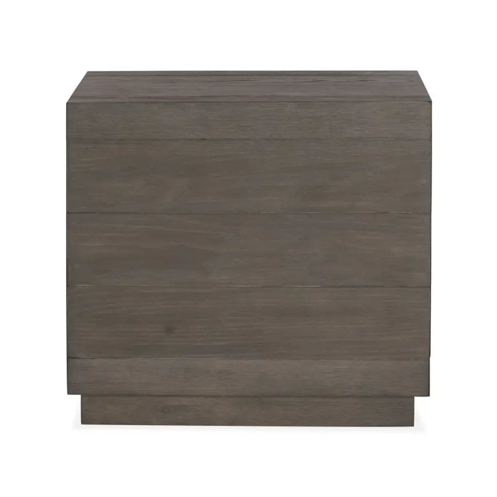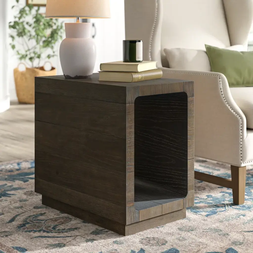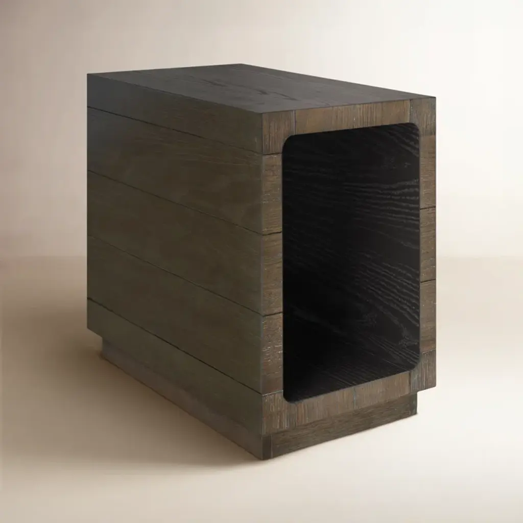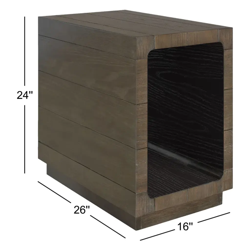 Classic meets contemporary in the bold personality. Refined yet commanding, each of these distinctive tables looks as though it could be carved from a single block. An espresso finish highlights the exquisite beauty of its cathedral oak veneers while graphite hardware adds the finishing touch.